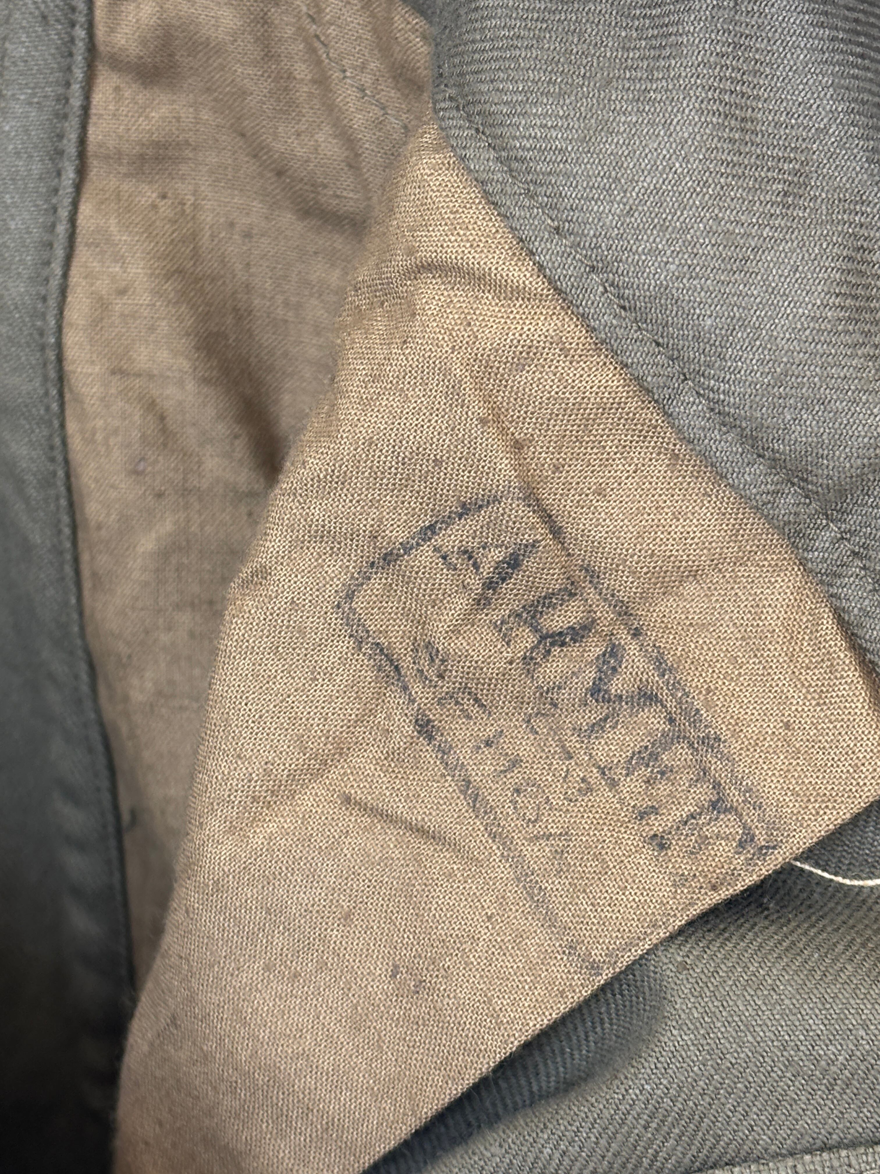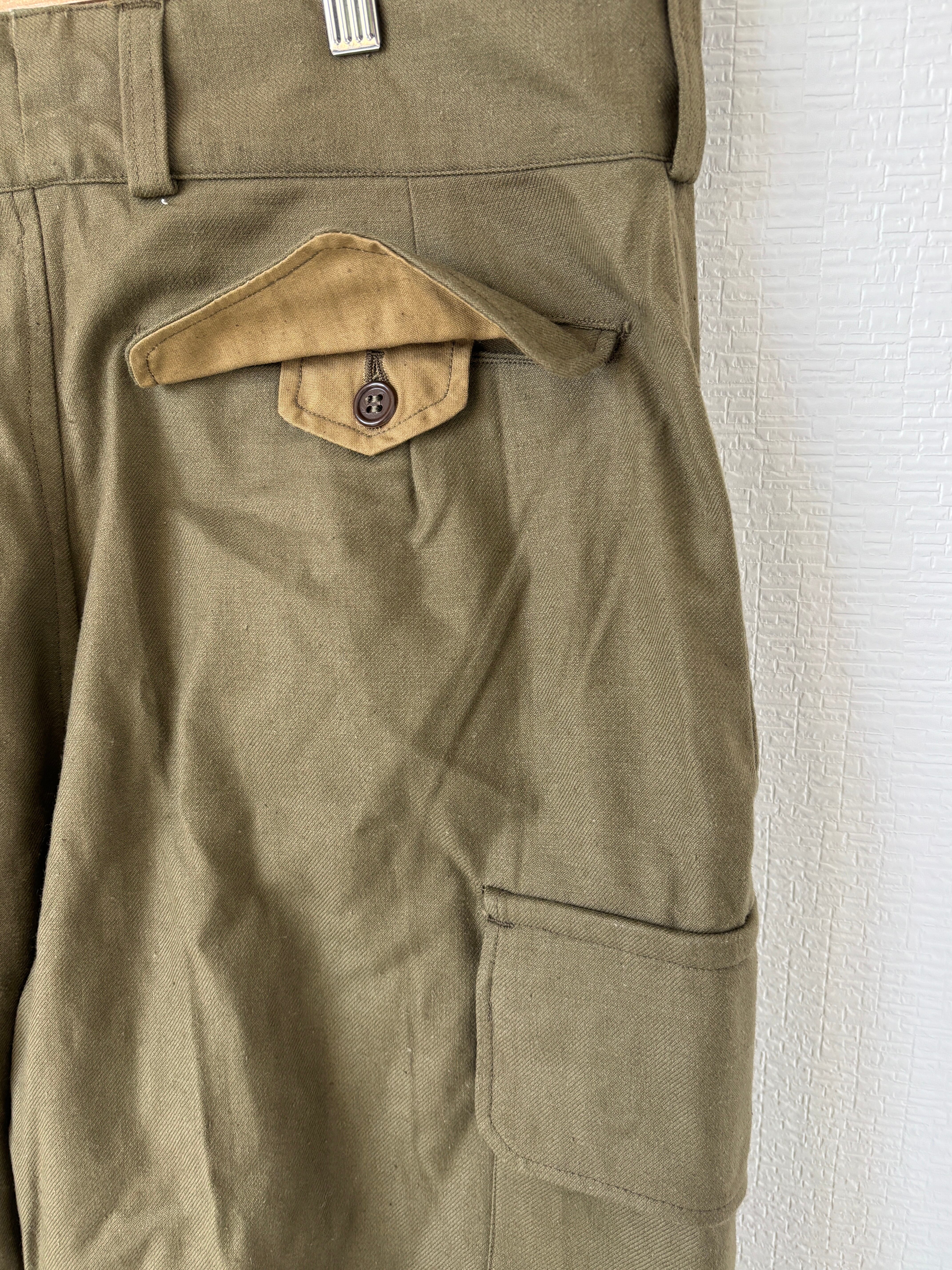 シルエットは太めのストレートで、両サイドには大きなフラップポケット、フラップを留めるボタン、裾のベルトなど、フレンチミリタリーの縫製の良さをこれでもかと感じることができると思います。