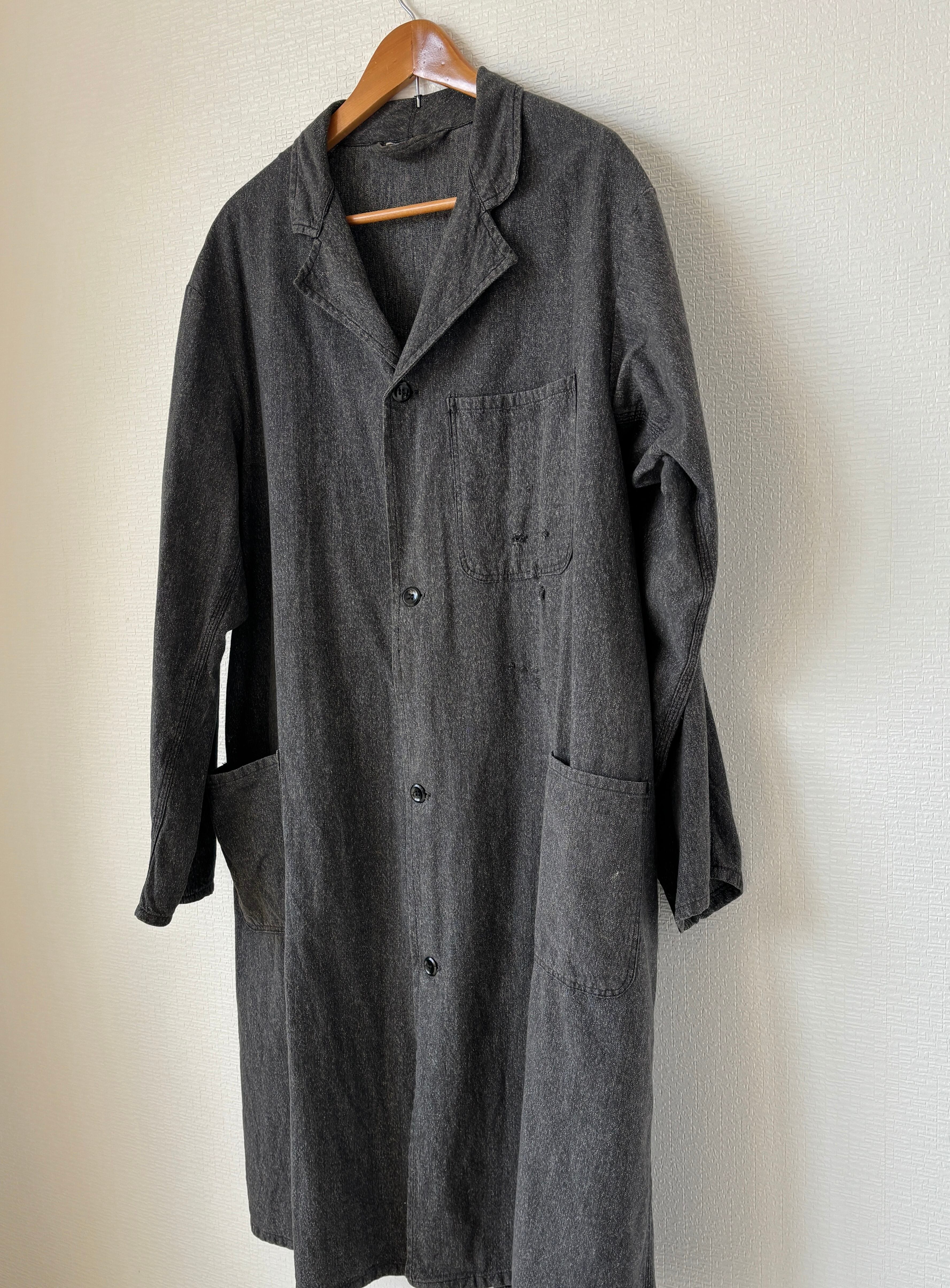 1950〜60年代フランス製ブラックシャンブレーのアトリエコートになります