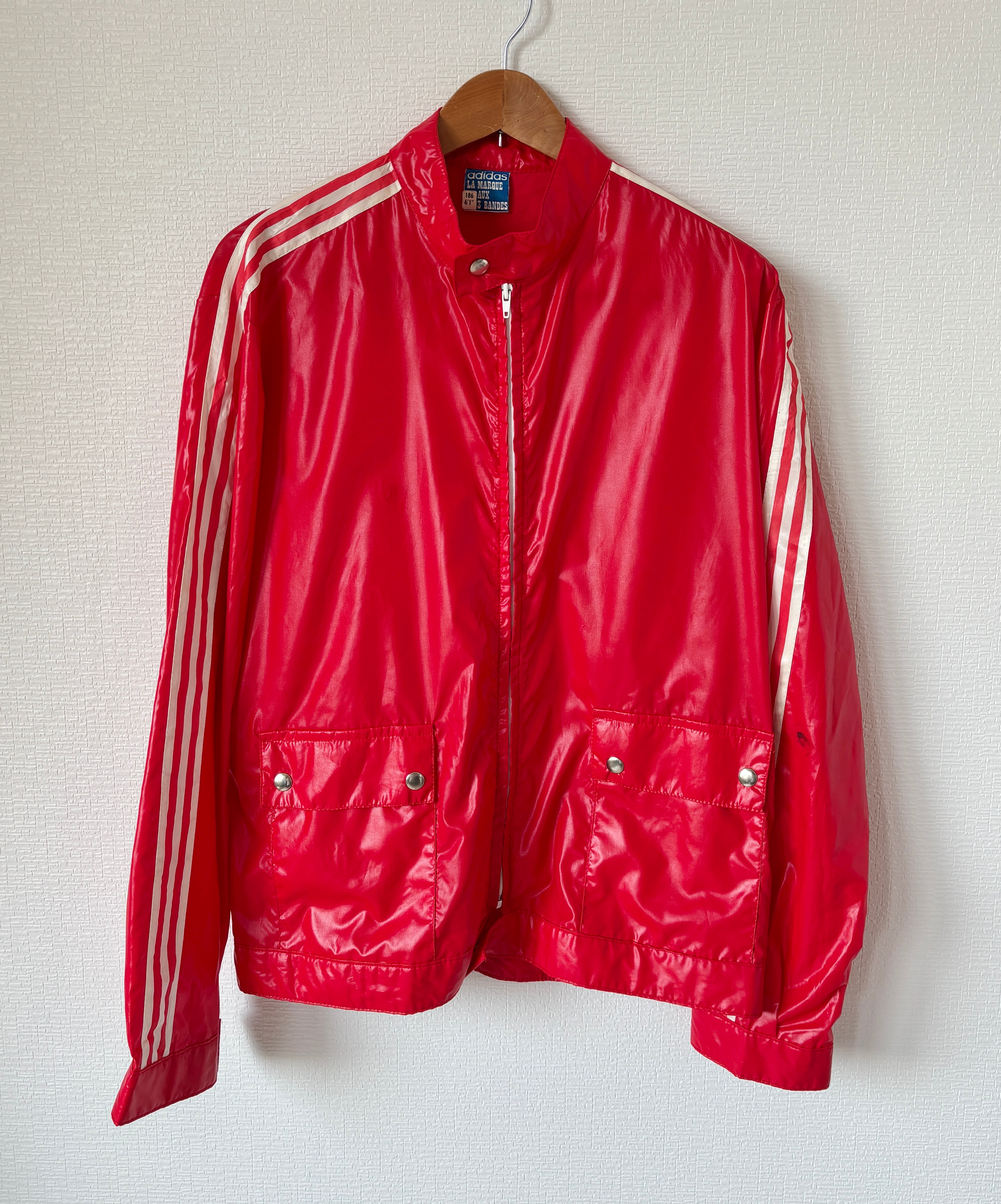 1972年から1995年までアディダスの正式ロゴとして使用されていたトレフォイルロゴの付いたナイロンジャケット。フランスVentex製です。