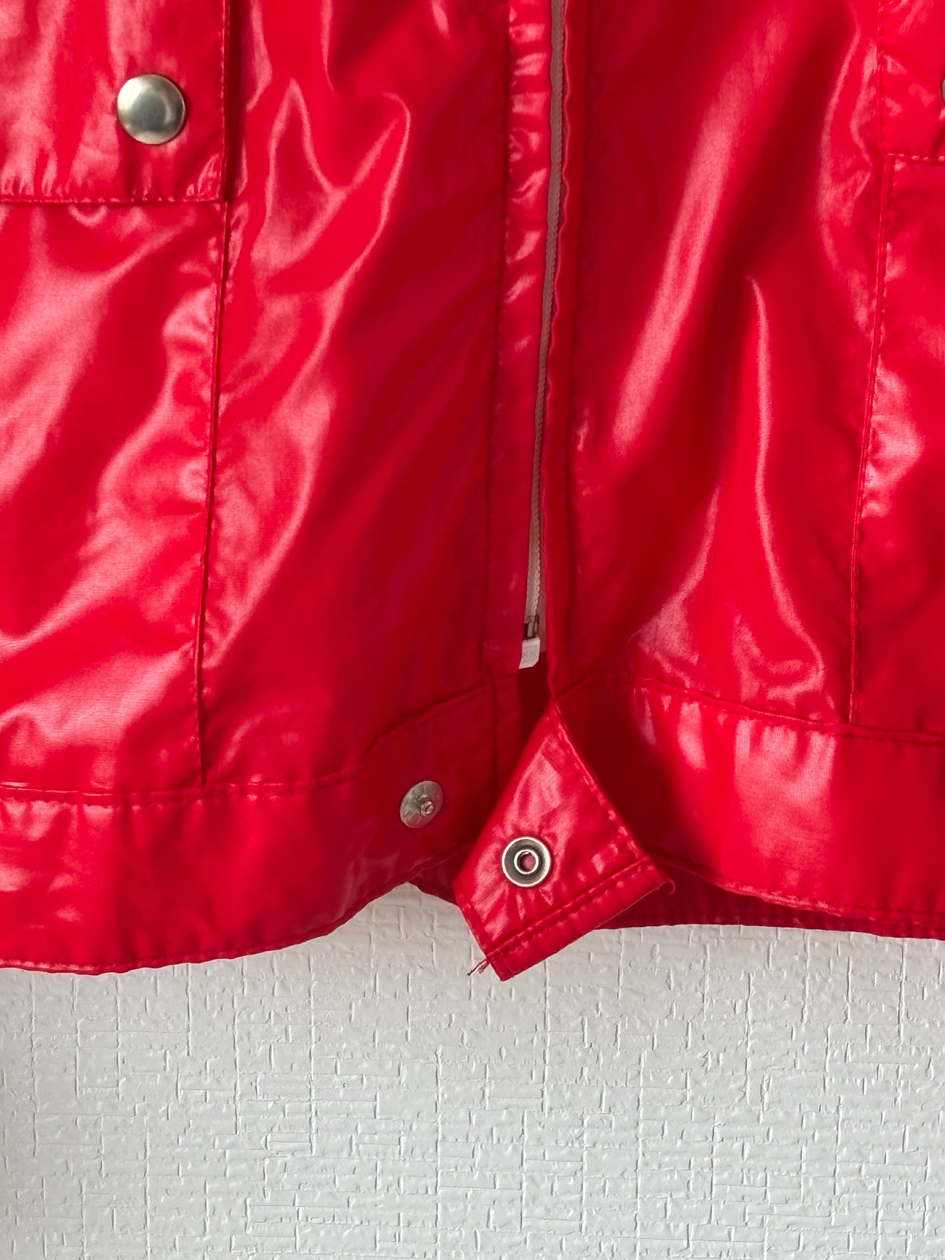 鮮やかなレッドベースにホワイトジップのアクセント。