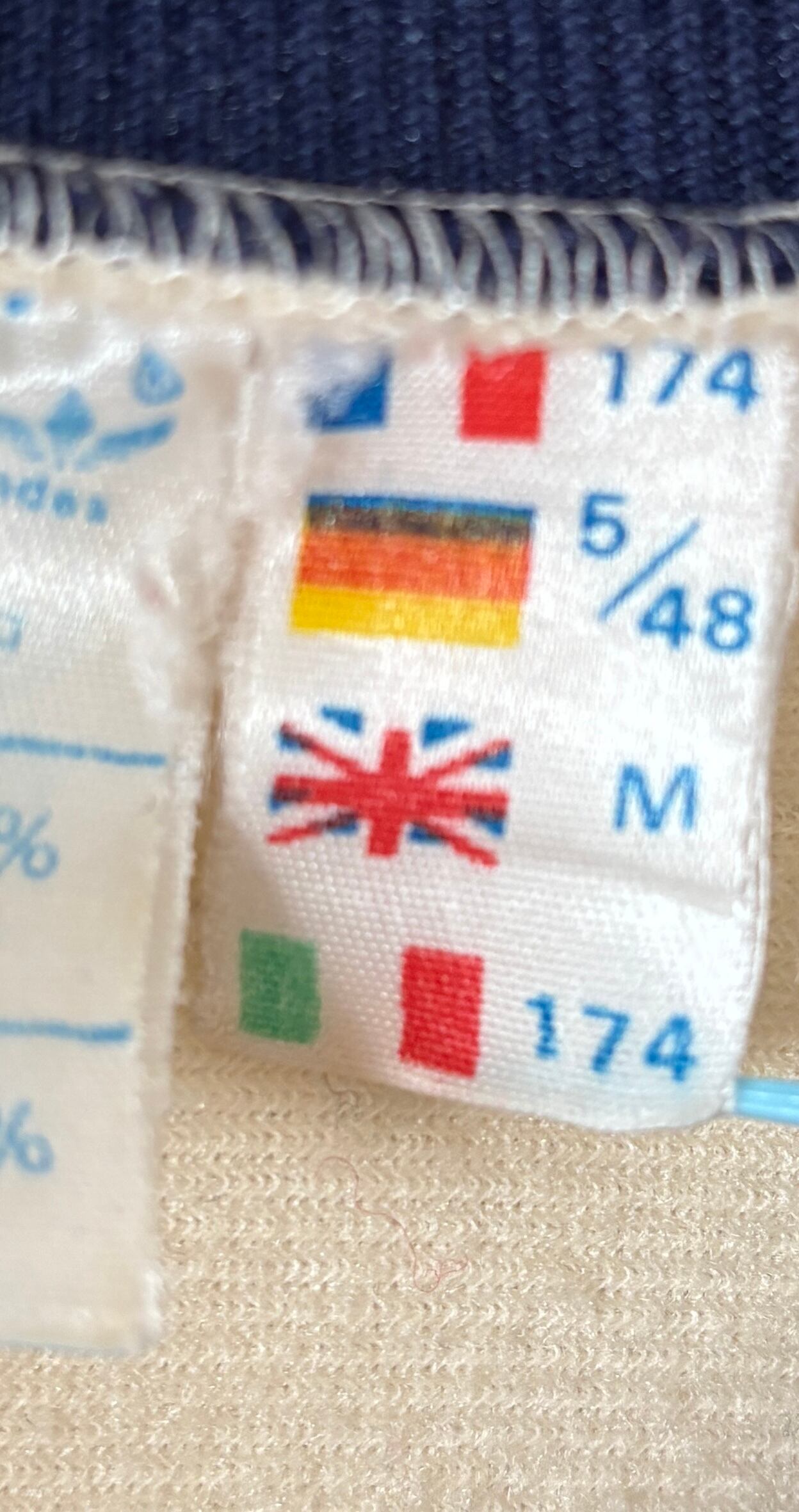 1972年から1995年までアディダスの正式ロゴとして使用されていた、トレフォイルロゴのトラックジャケット。フランスのVENTEX社製です。