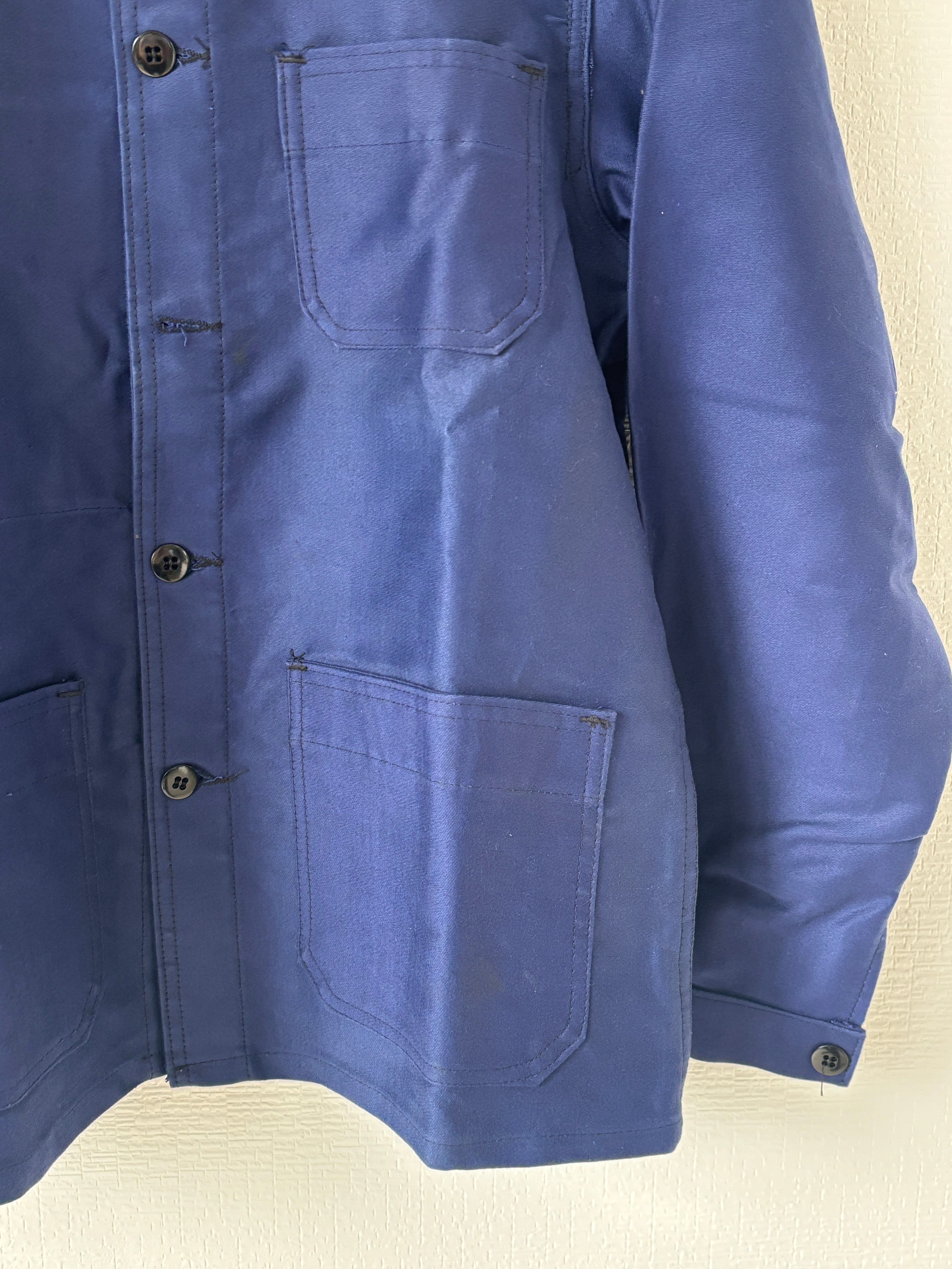 光沢感のあるモールスキン地に綺麗なシルエットはフレンチヴィンテージの定番、細かにみると若干ディテールもブランドによって異なりますが襟の形状やポケットの付き方も良いタイプ