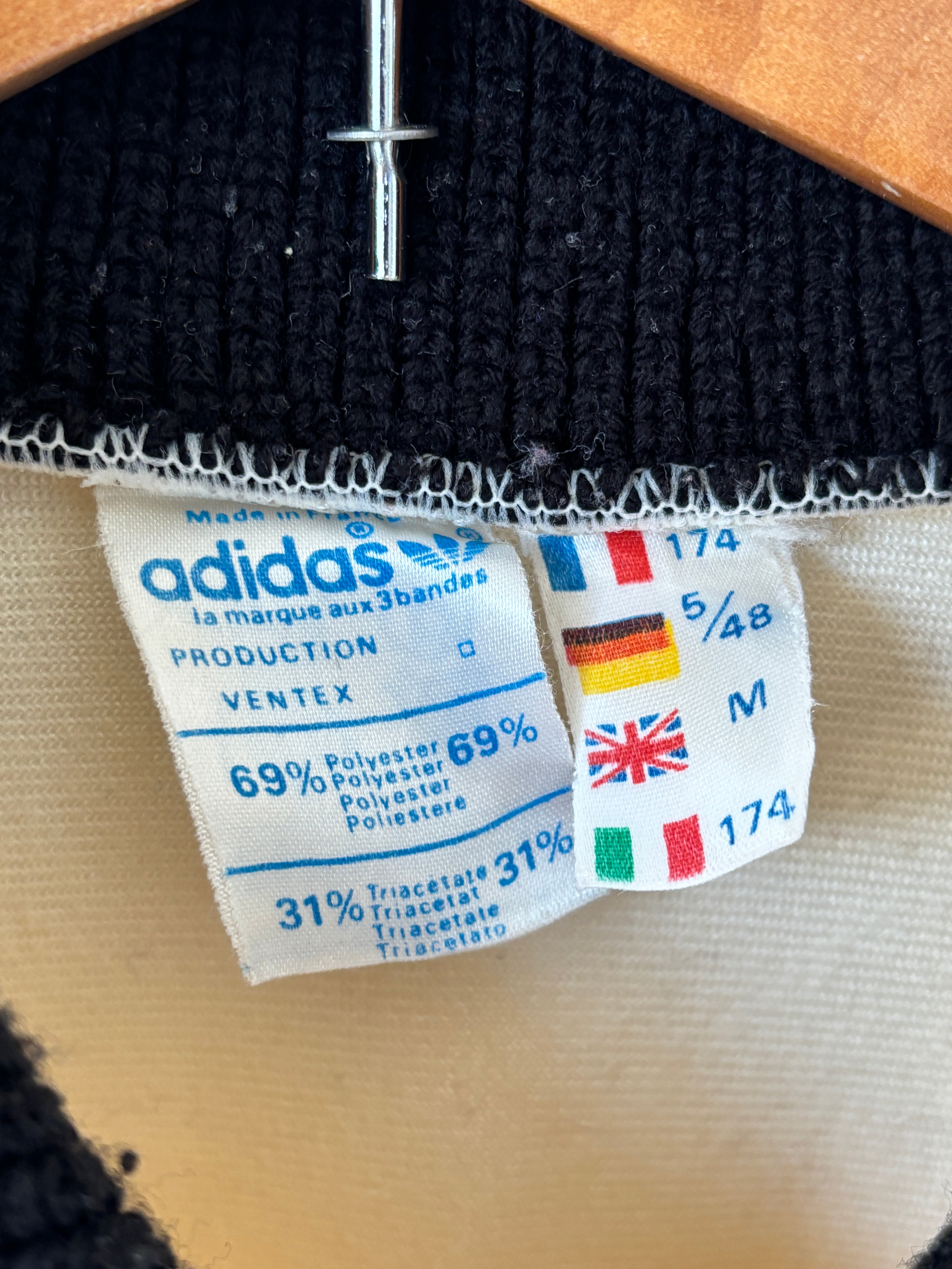 1972年から1995年までアディダスの正式ロゴとして使用されていたトレフォイルロゴのアディダスのトラックジャケット。フランスVentex製です。
