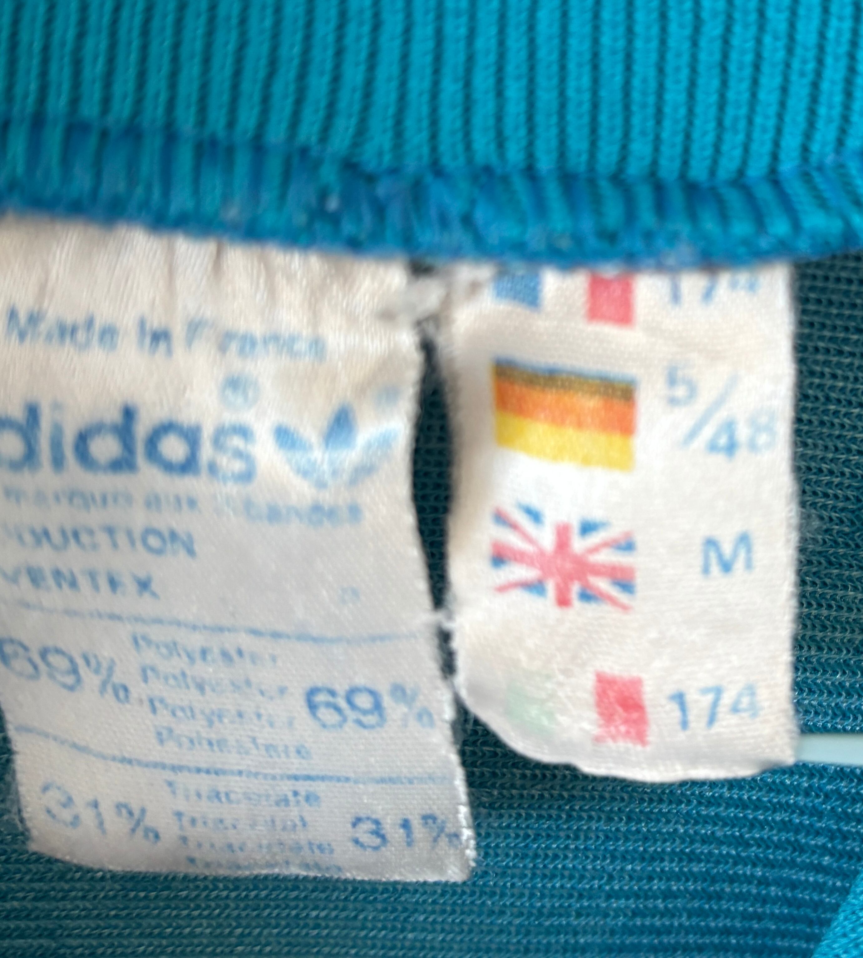 1972年から1995年までアディダスの正式ロゴとして使用されていた、トレフォイルロゴのトラックジャケット。フランスのVENTEX社製です。