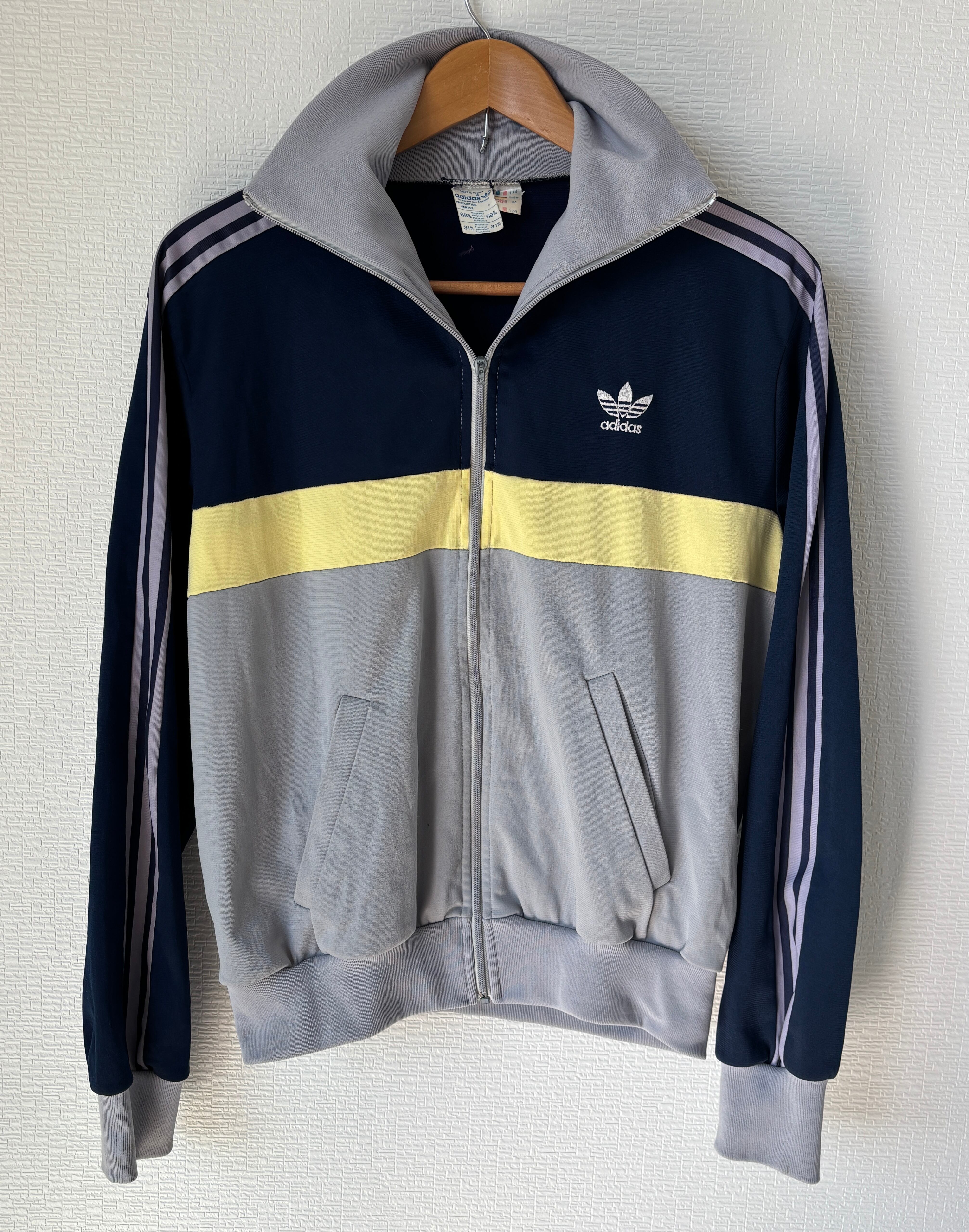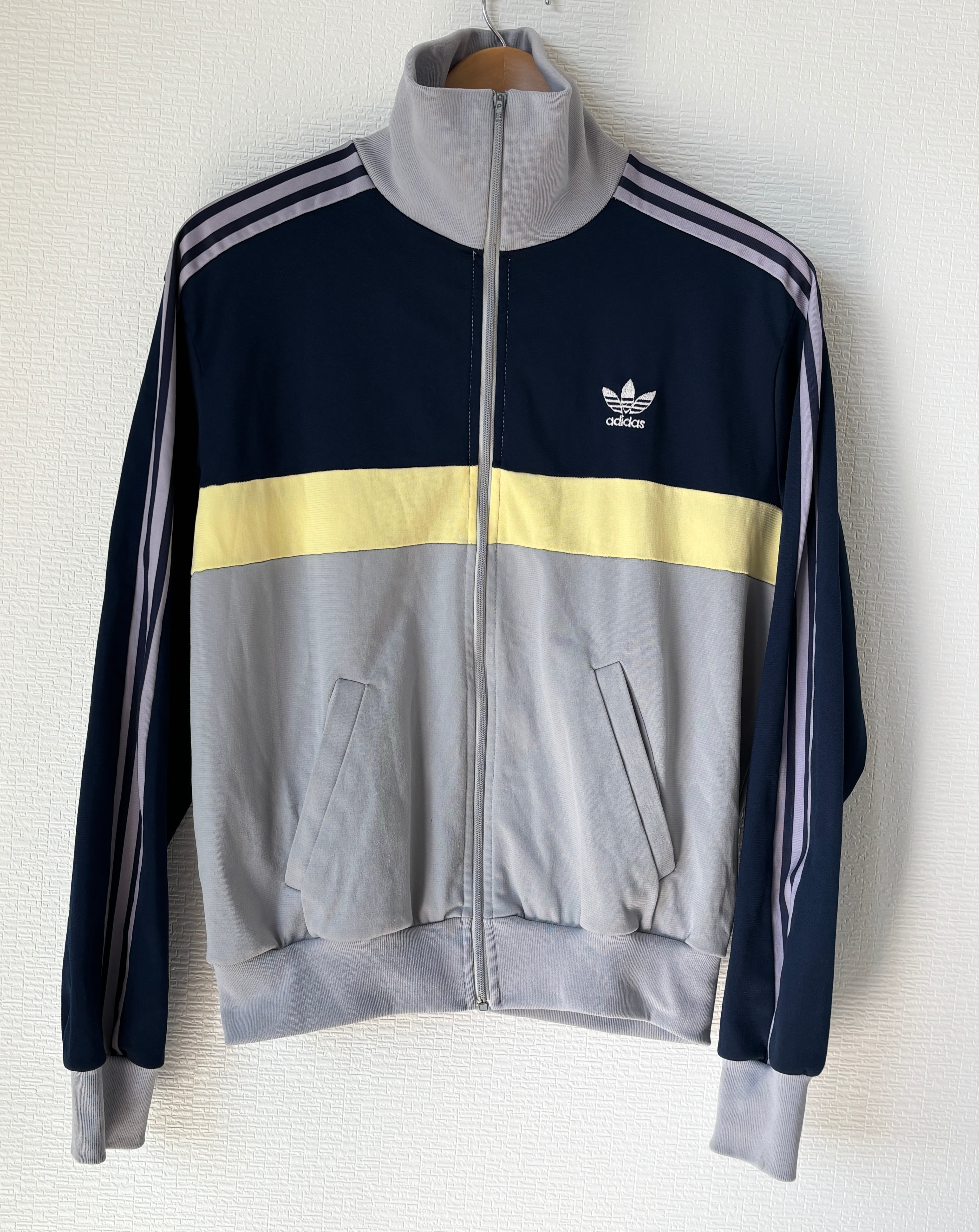 1972年から1995年までアディダスの正式ロゴとして使用されていた、トレフォイルロゴのトラックジャケット。フランスのVENTEX社製です。