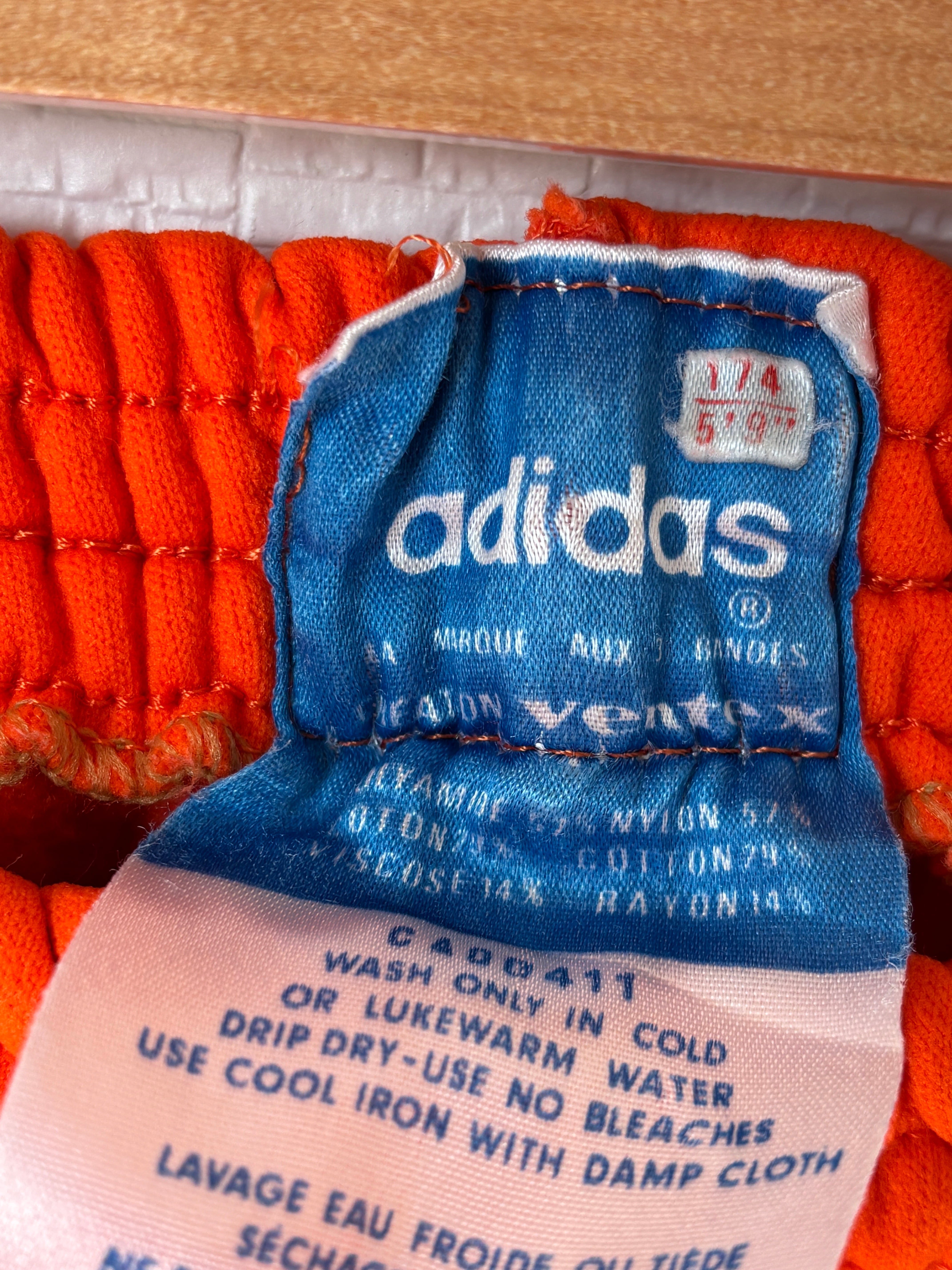 70年代にフランスのadidasが一部のスポーツウェアに使用していた襟なしトラックジャケットです。コットン混のVentex社製ボディ