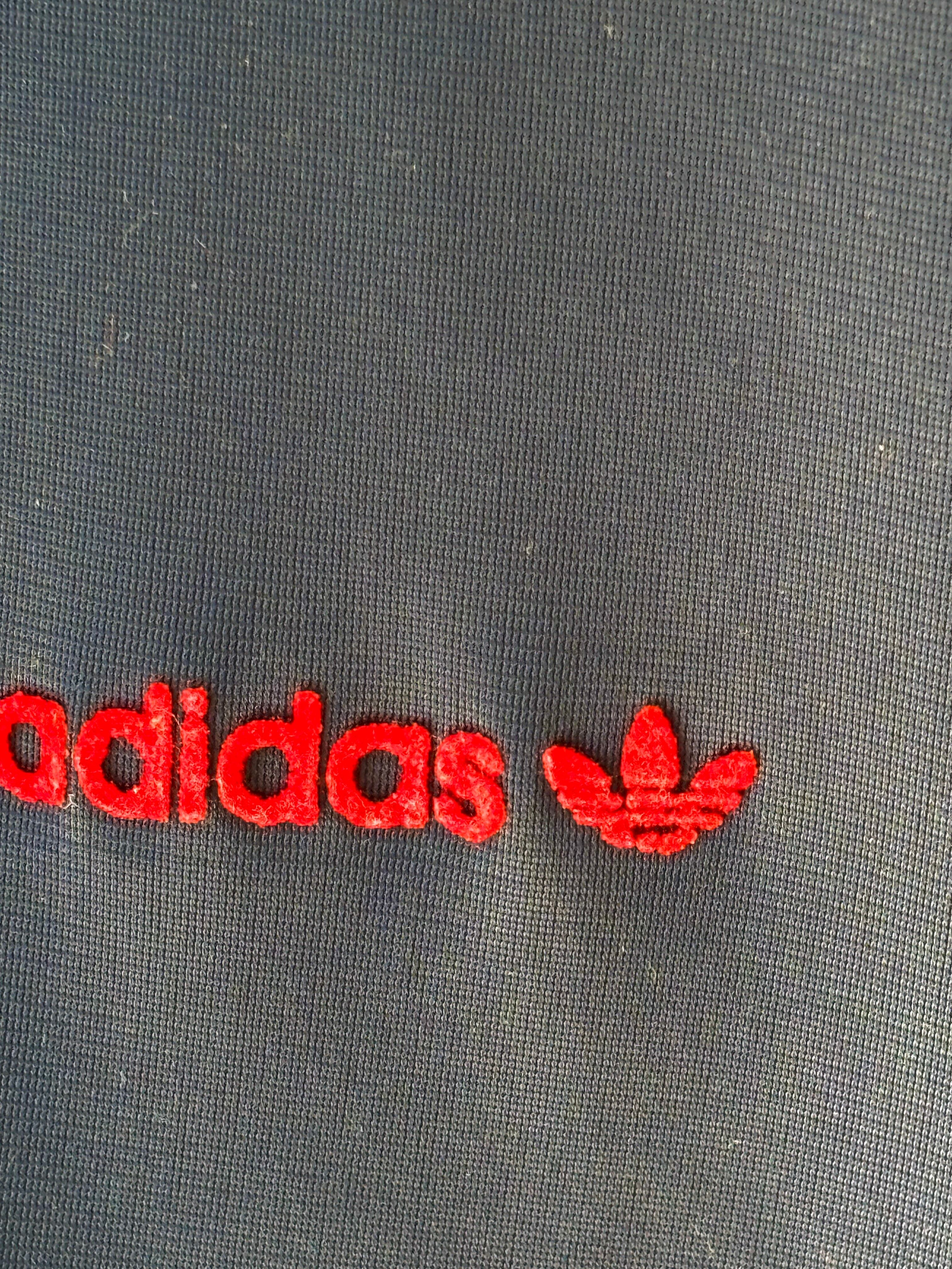 1972年から1995年までアディダスの正式ロゴとして使用されていた、トレフォイルロゴのトラックジャケット。
