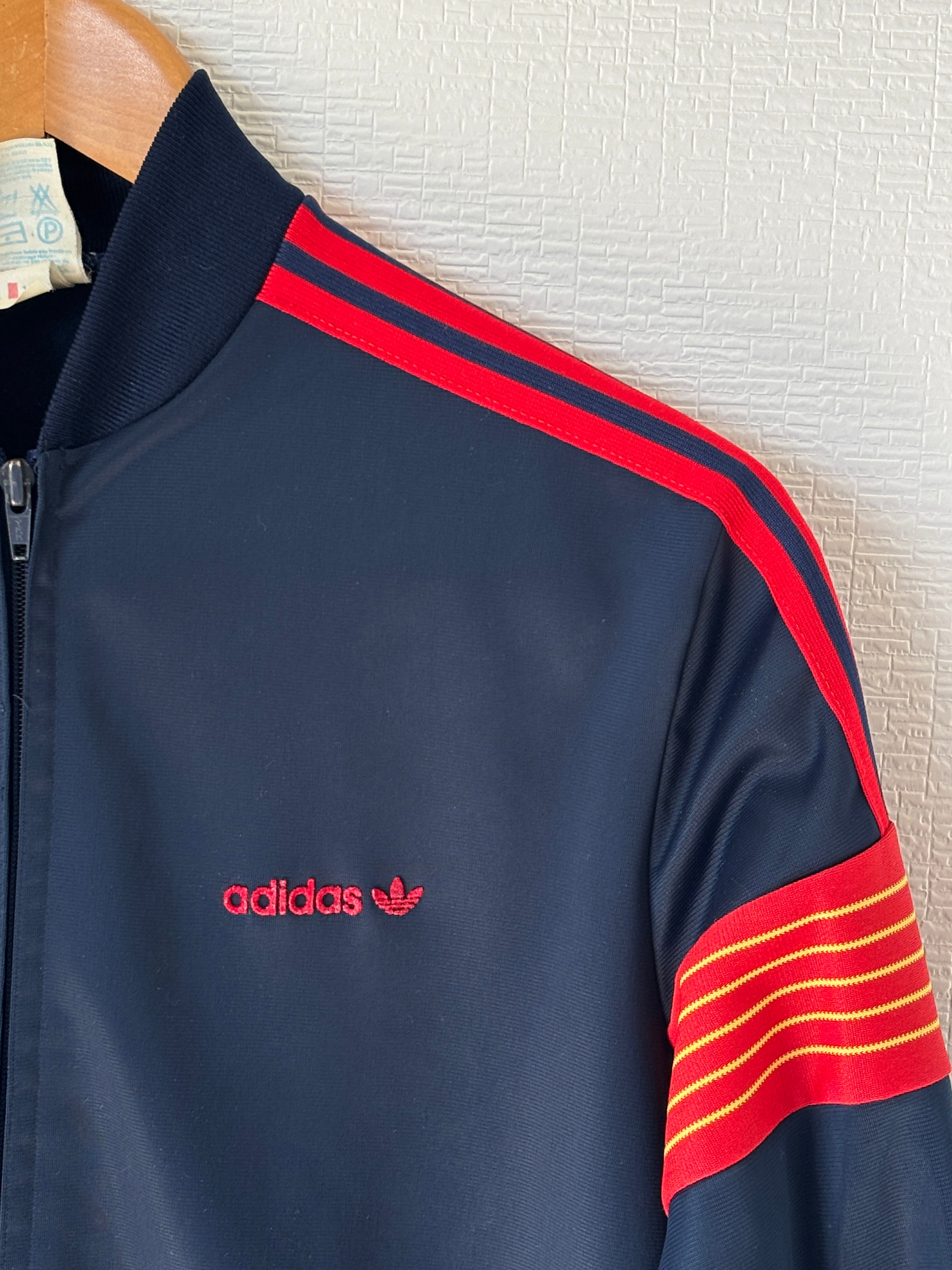 襟なしデザインが特徴的なこちらのジャケットは、古いadidasジャージらしい魅力あるアイテム。