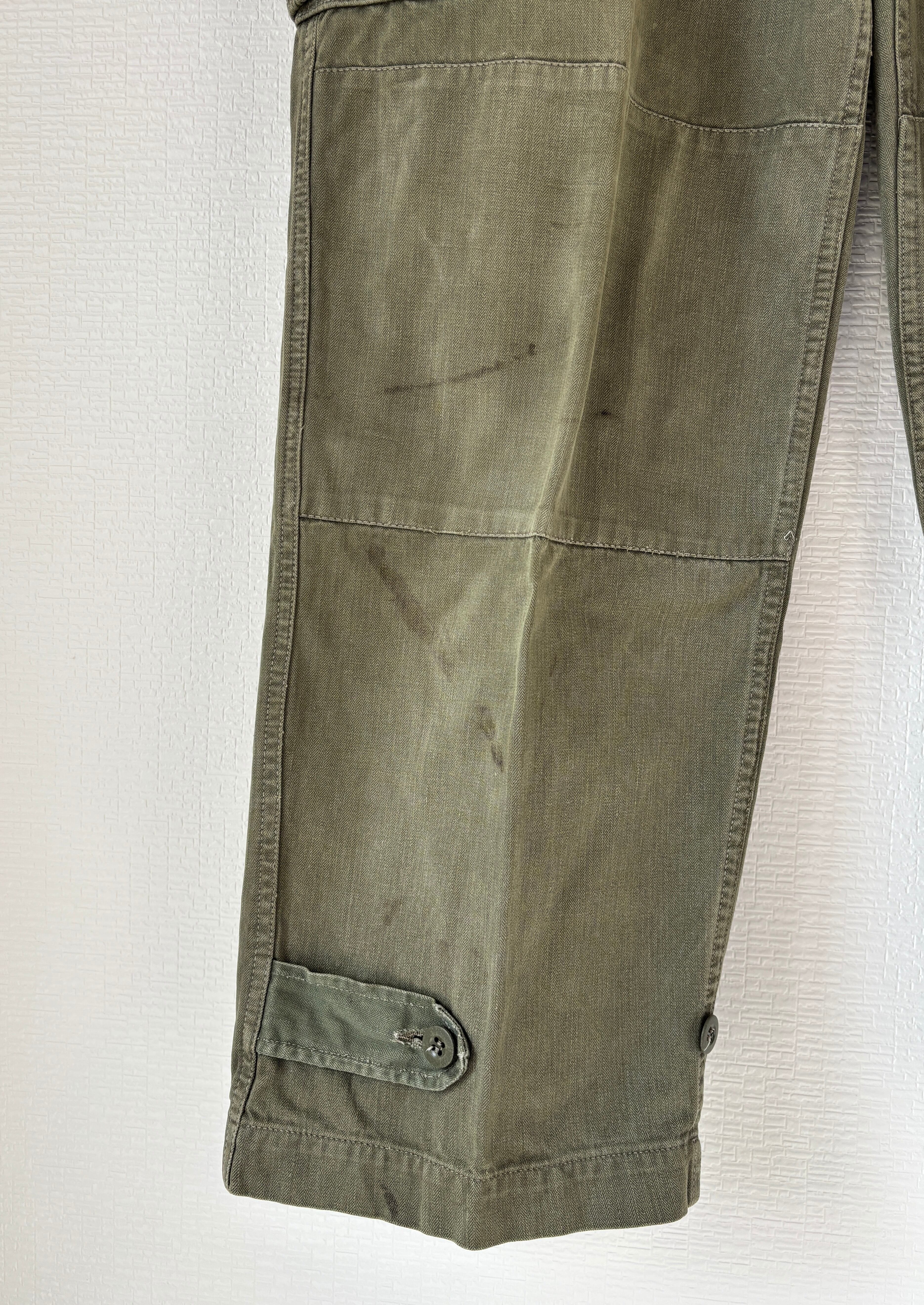 名作と呼ばれ、近年人気が高まっている、フランス軍のM47パンツでこちらのM47は、細身でテーパードがかかった後期タイプです