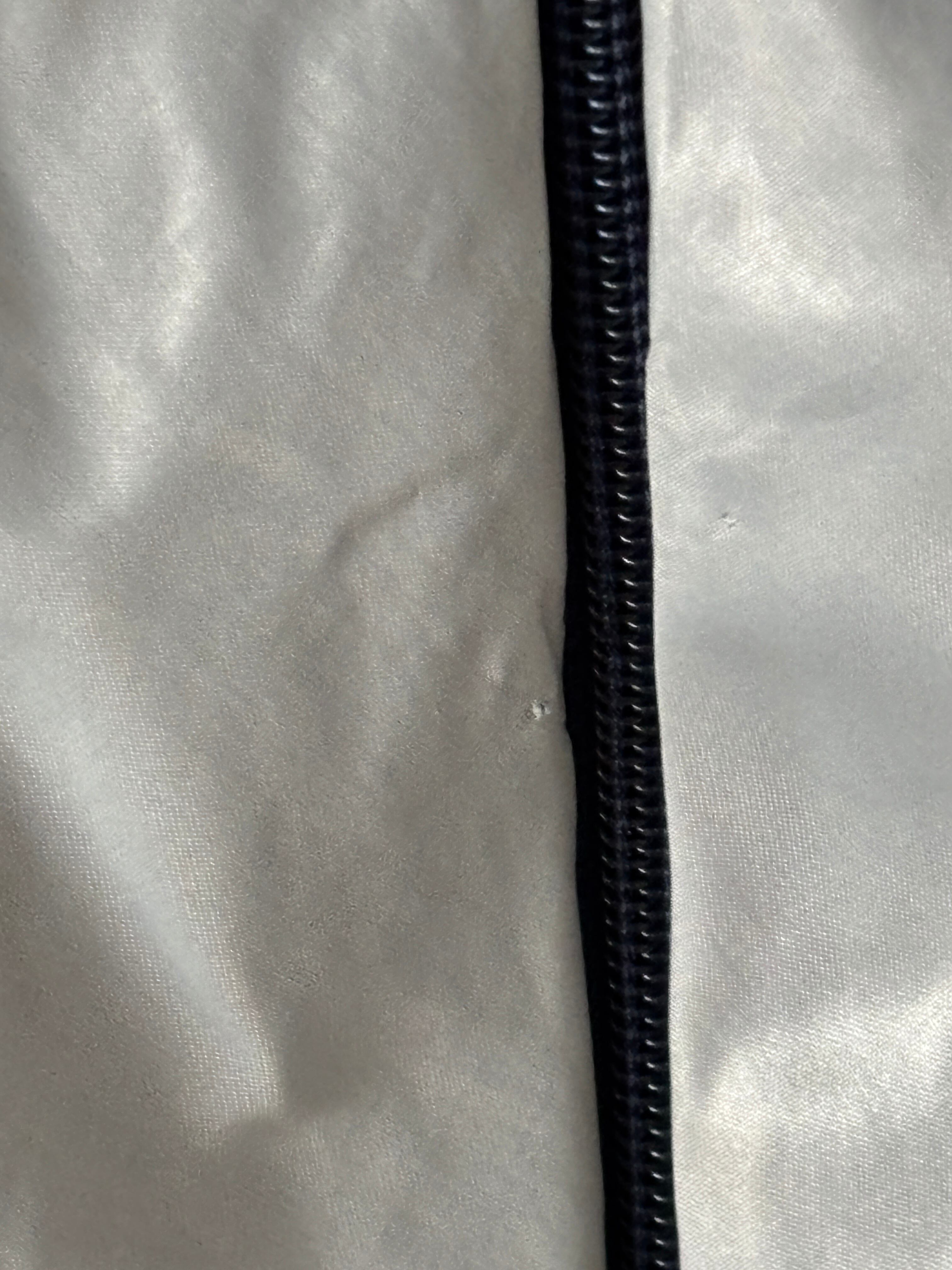 腹部ジップ付近に小穴 ポケット口に薄汚れがあります。