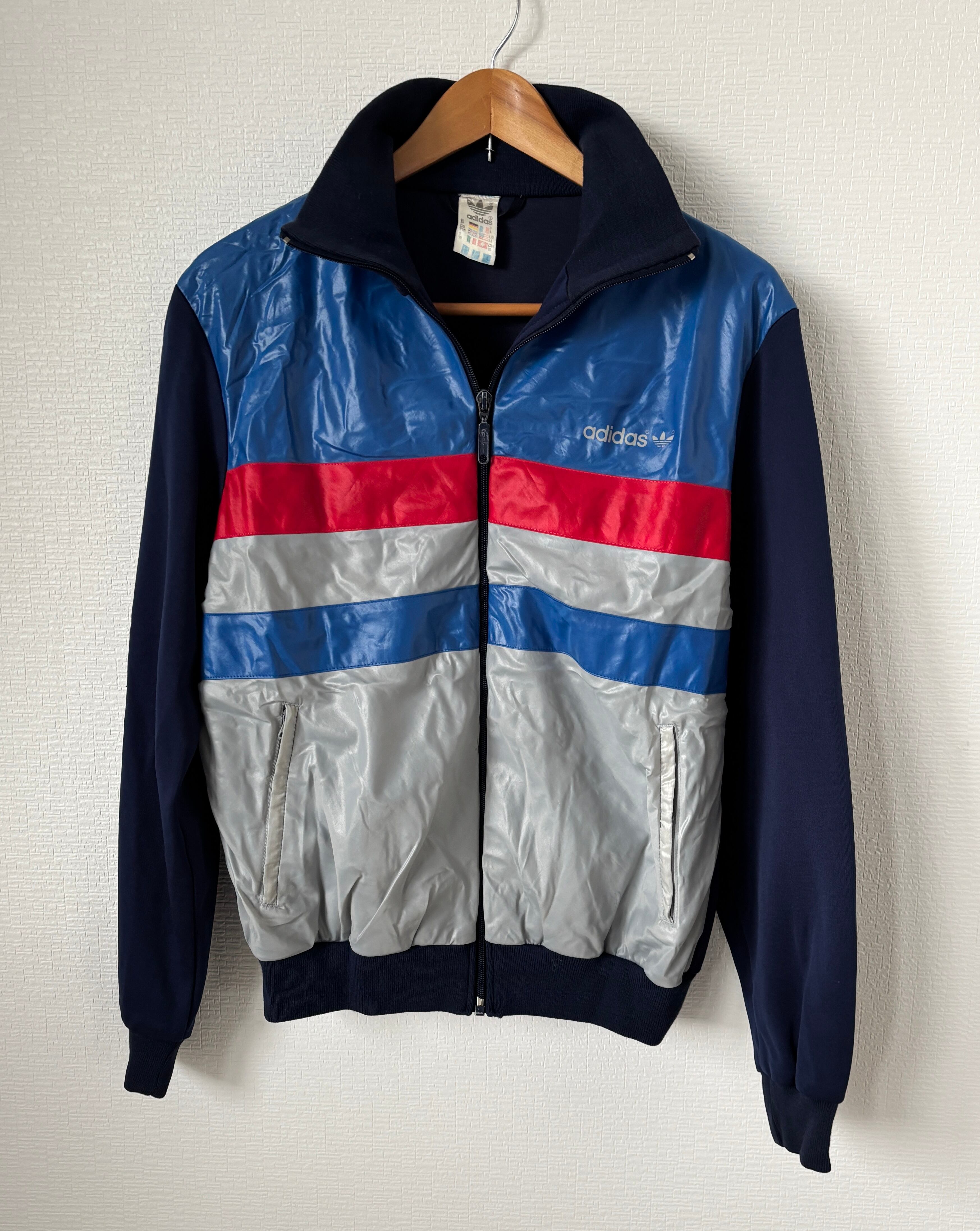 1972年から1995年までアディダスの正式ロゴとして使用されていたトレフォイルロゴの付いたジャケット。