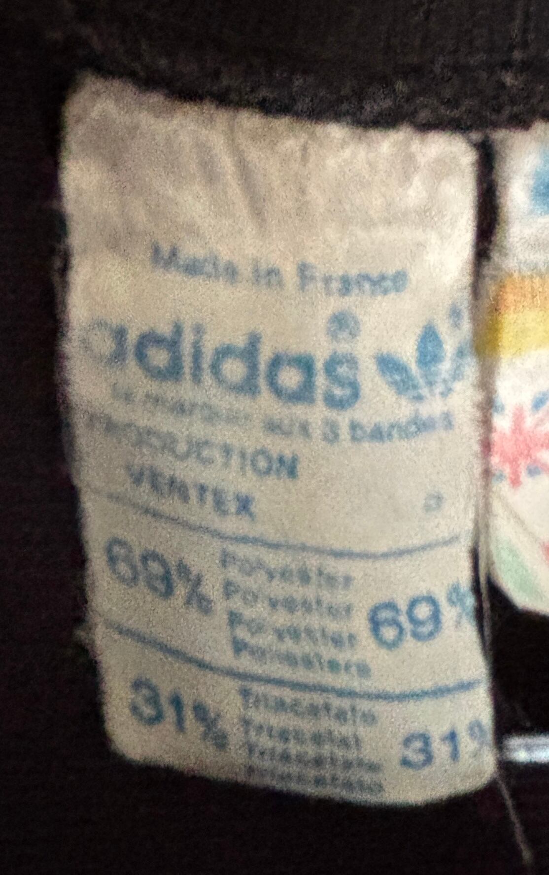 1972年から1995年までアディダスの正式ロゴとして使用されていた、トレフォイルロゴのトラックジャケット。フランスのVENTEX社製です。