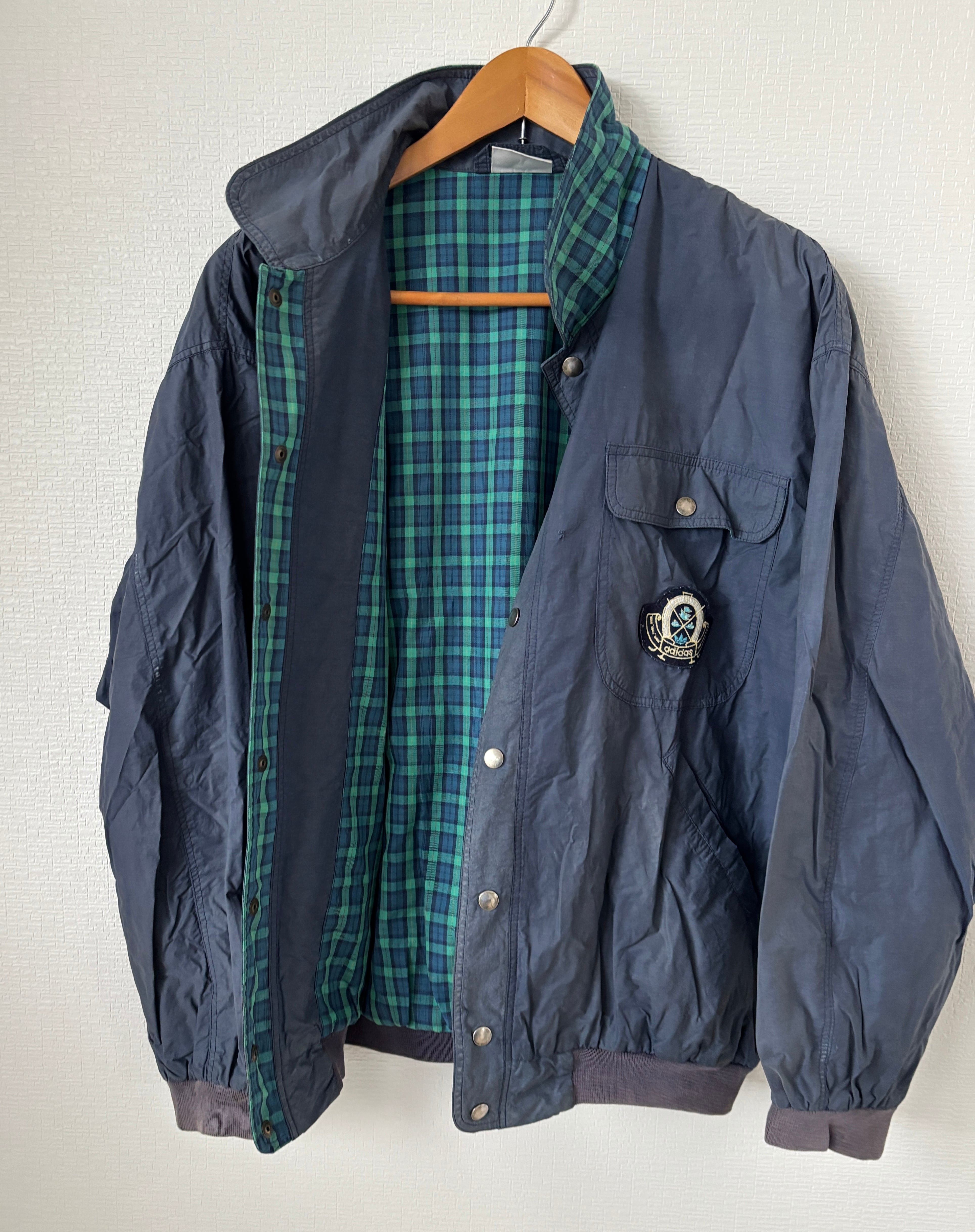 ゴルフラインでしょうか、裏地のグリーンチェックの鮮やかさ辺り、さすがフレンチアディダスといったところでしょうか
