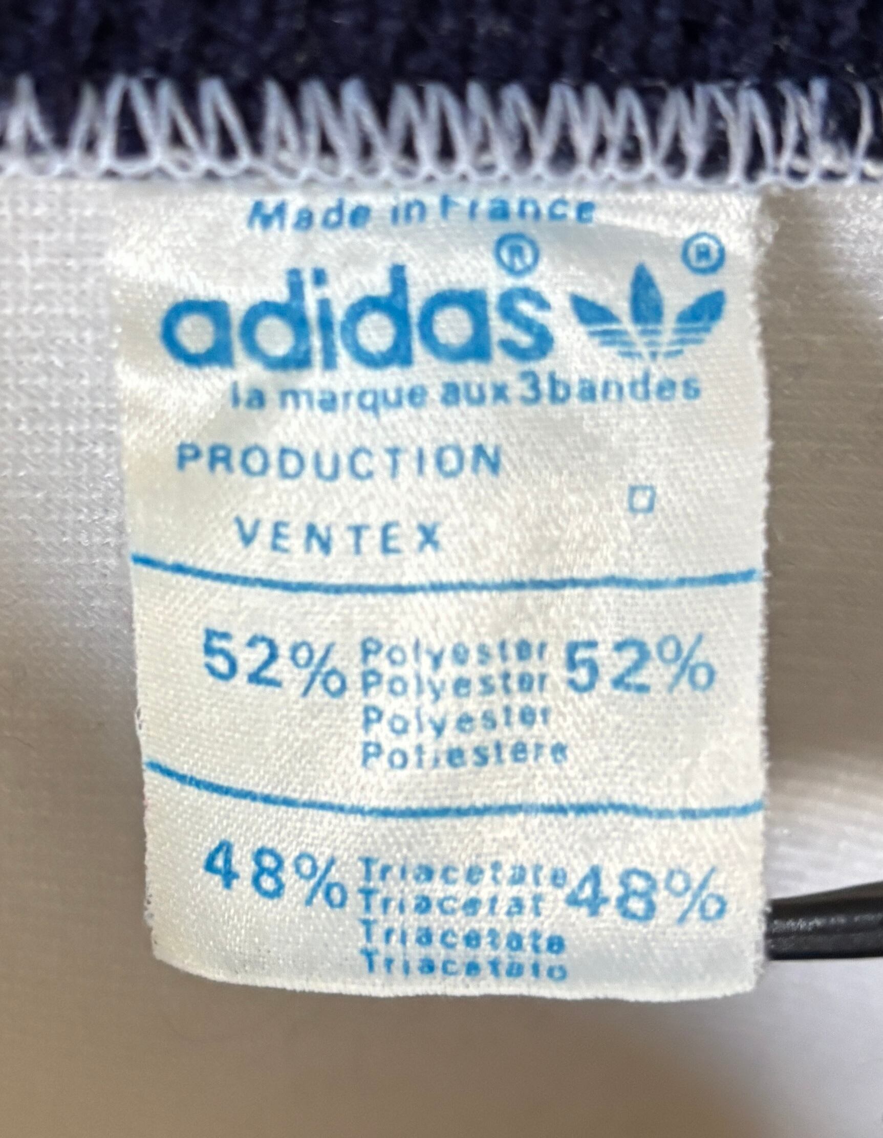 1972年から1995年までアディダスの正式ロゴとして使用されていたトレフォイルロゴのアディダスのトラックジャケット。フランスVentex製です。