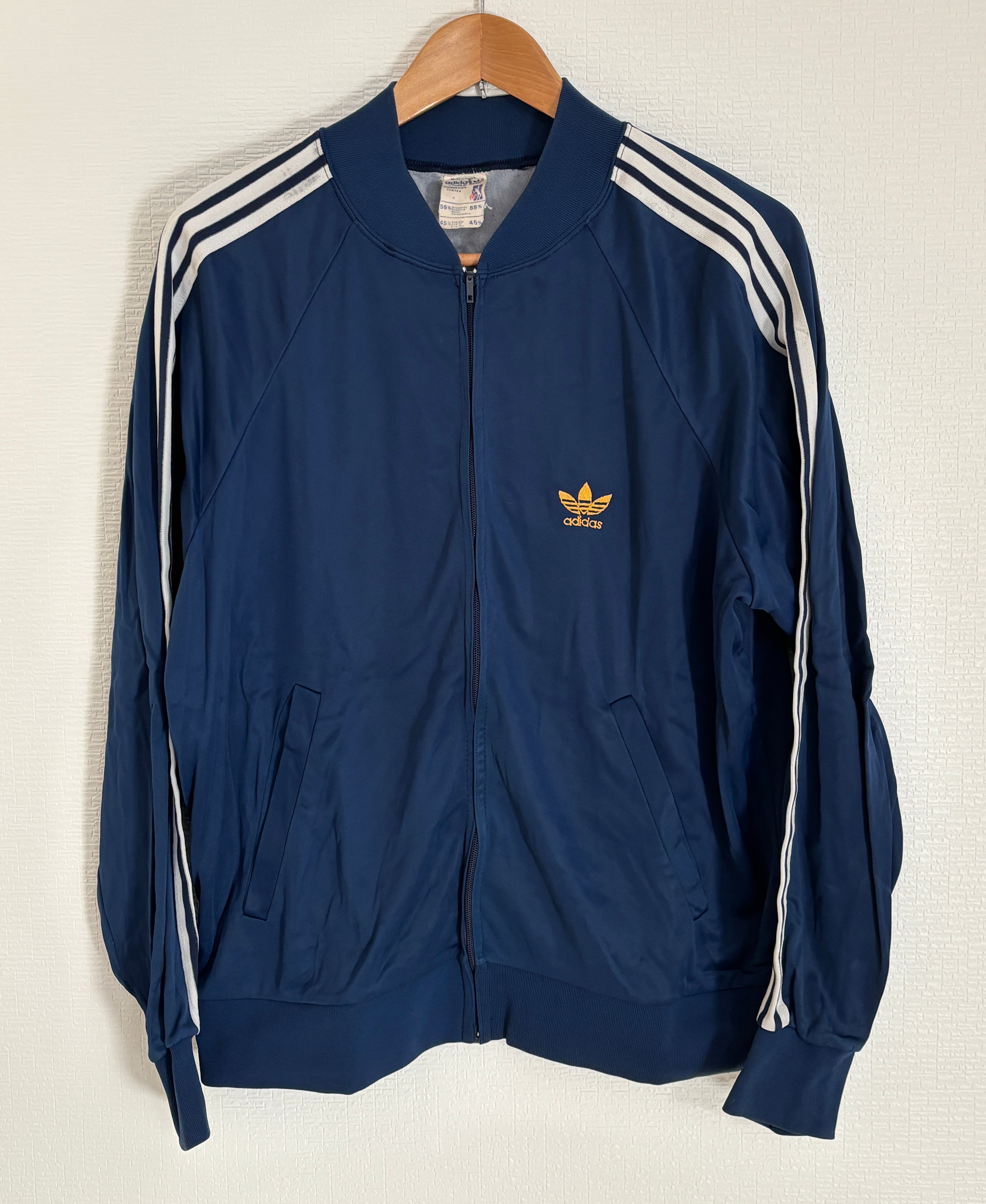 1972年から1995年までアディダスの正式ロゴとして使用されていた、トレフォイルロゴのトラックジャケット