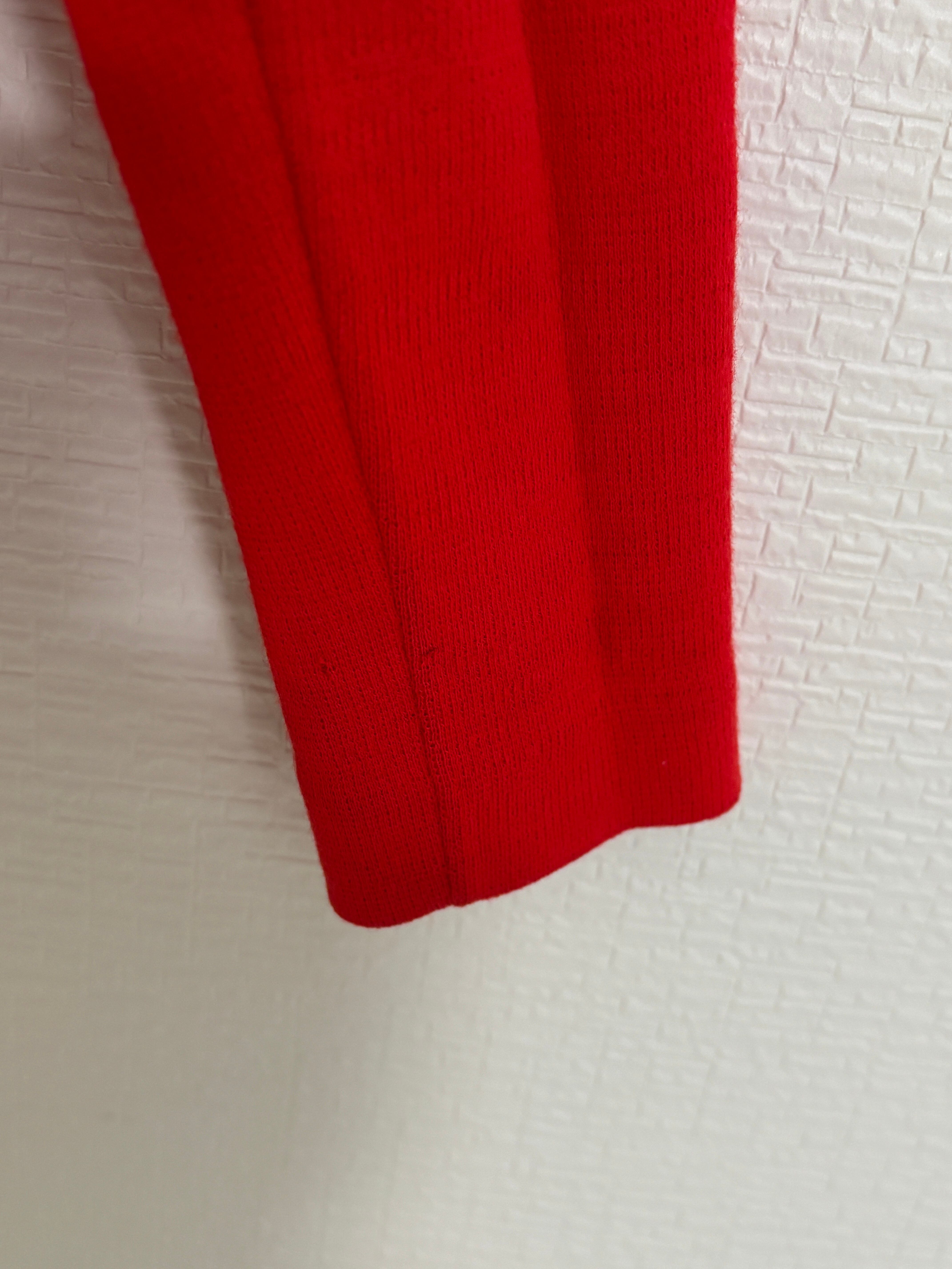 鮮やかなビタミンカラーでカーディガンのような一着。胸ポケットにトレフォイルが付いています。
