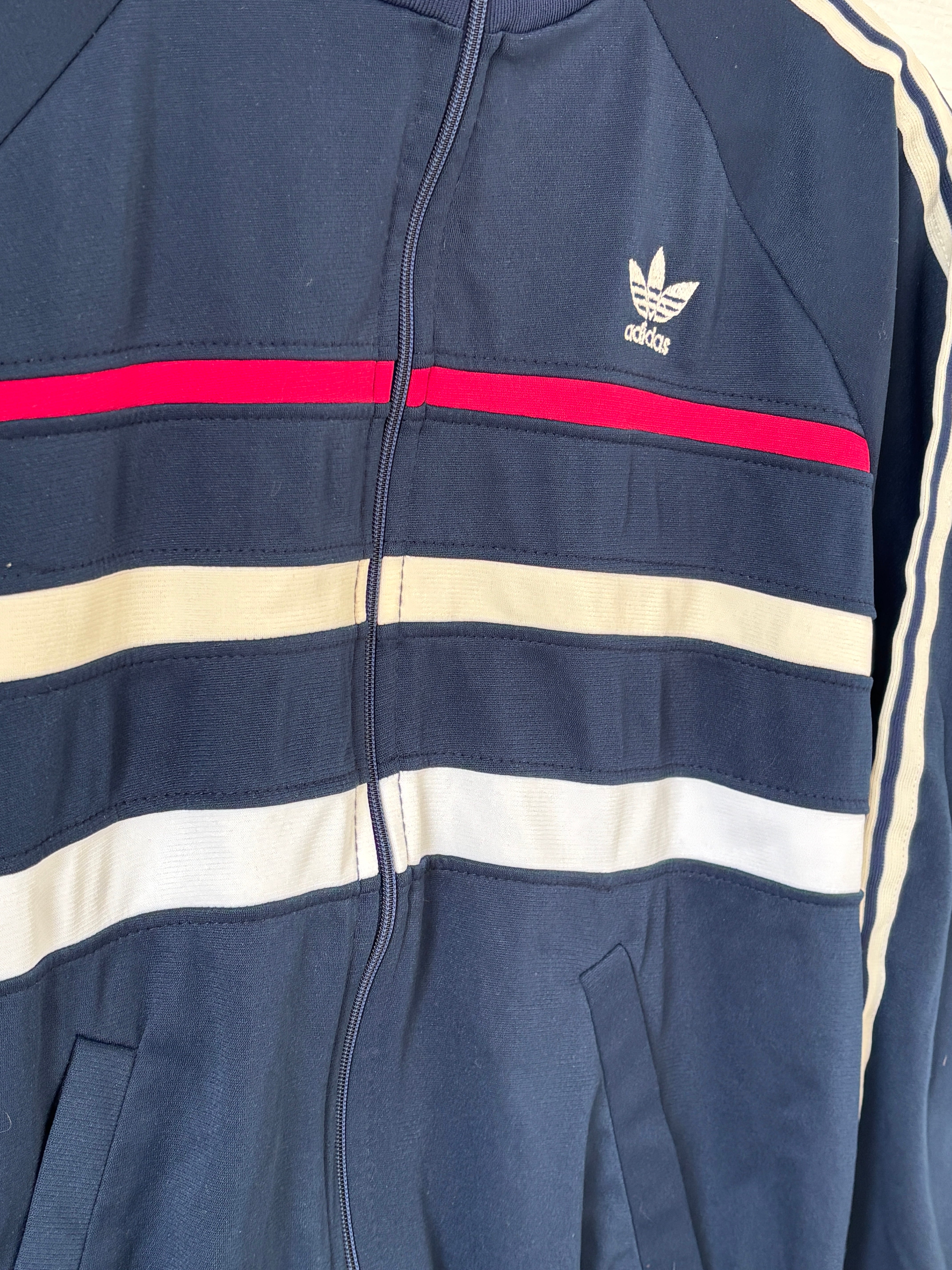 1972年から1995年までアディダスの正式ロゴとして使用されていた、トレフォイルロゴのトラックジャケット。フランスのVENTEX社製です。