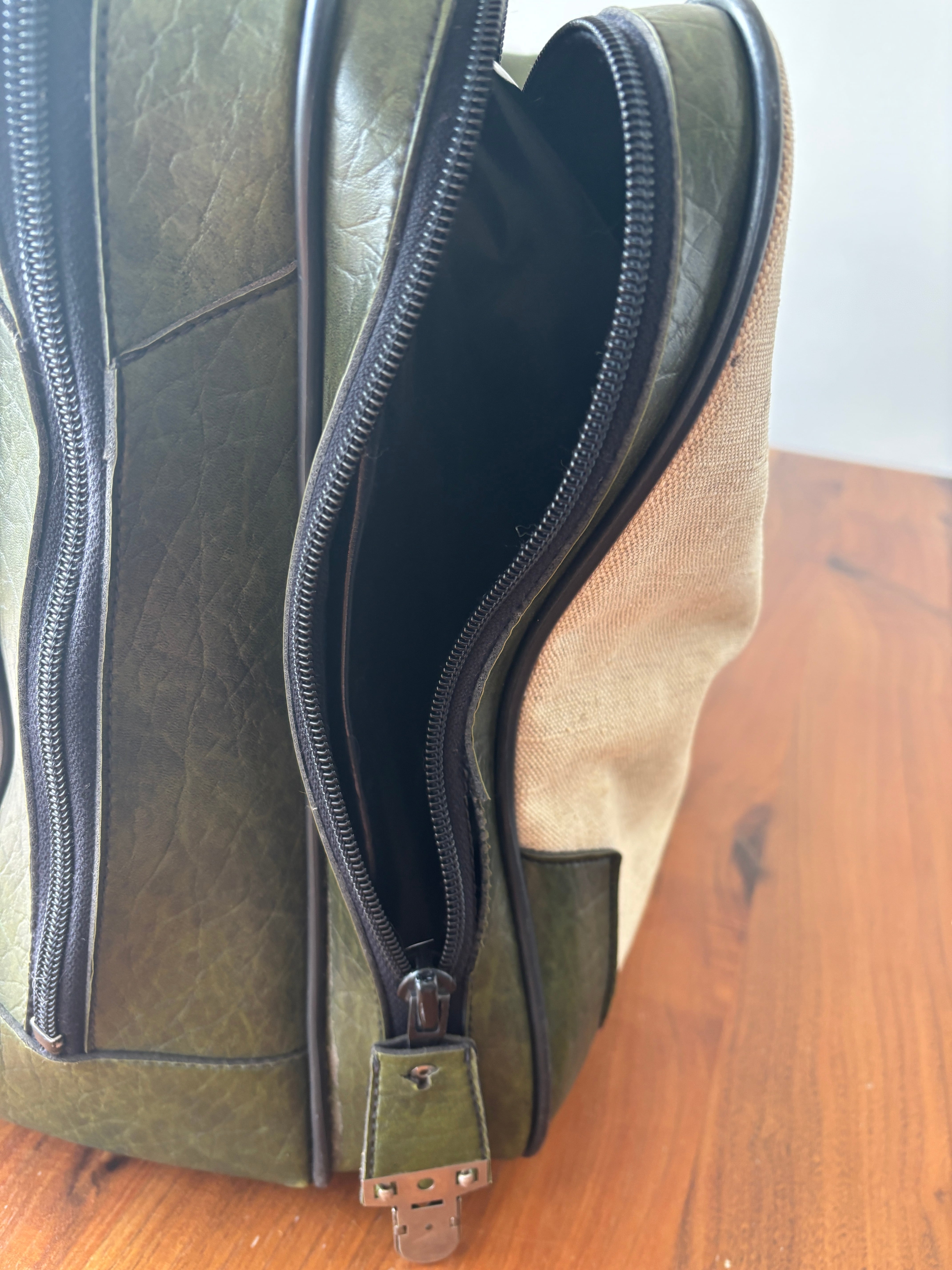落ち着いたベースのキャンバス地にダークグリーンの配色は古さを感じさせることのない、どこかアーバンな雰囲気が漂う逸品