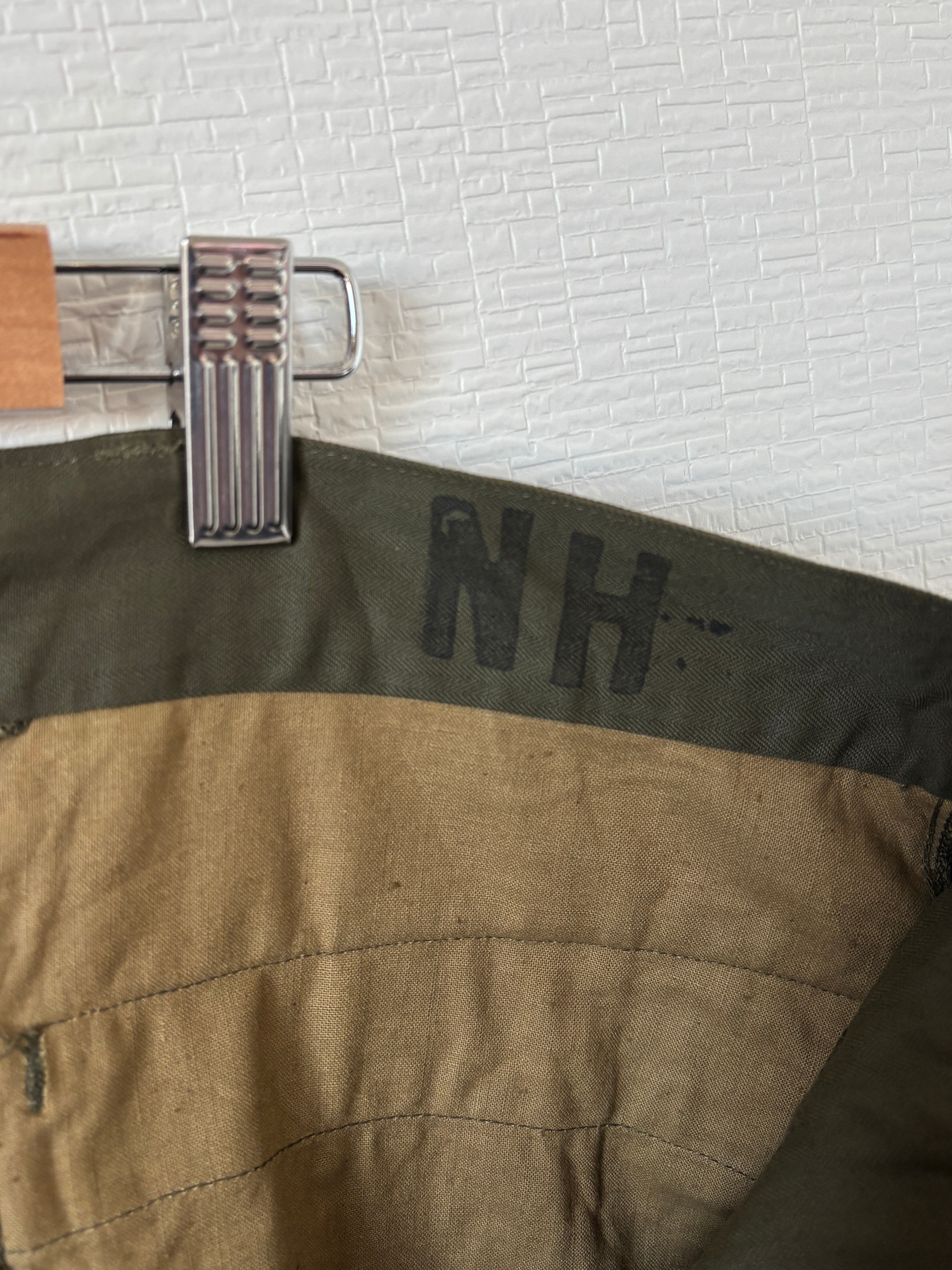 シルエットは前期に比べ細身でテーパードがかかっており、両サイドには大きなフラップポケット、フラップを留めるボタン、裾のベルトなど、フレンチミリタリーの縫製の良さが溢れ出ております。