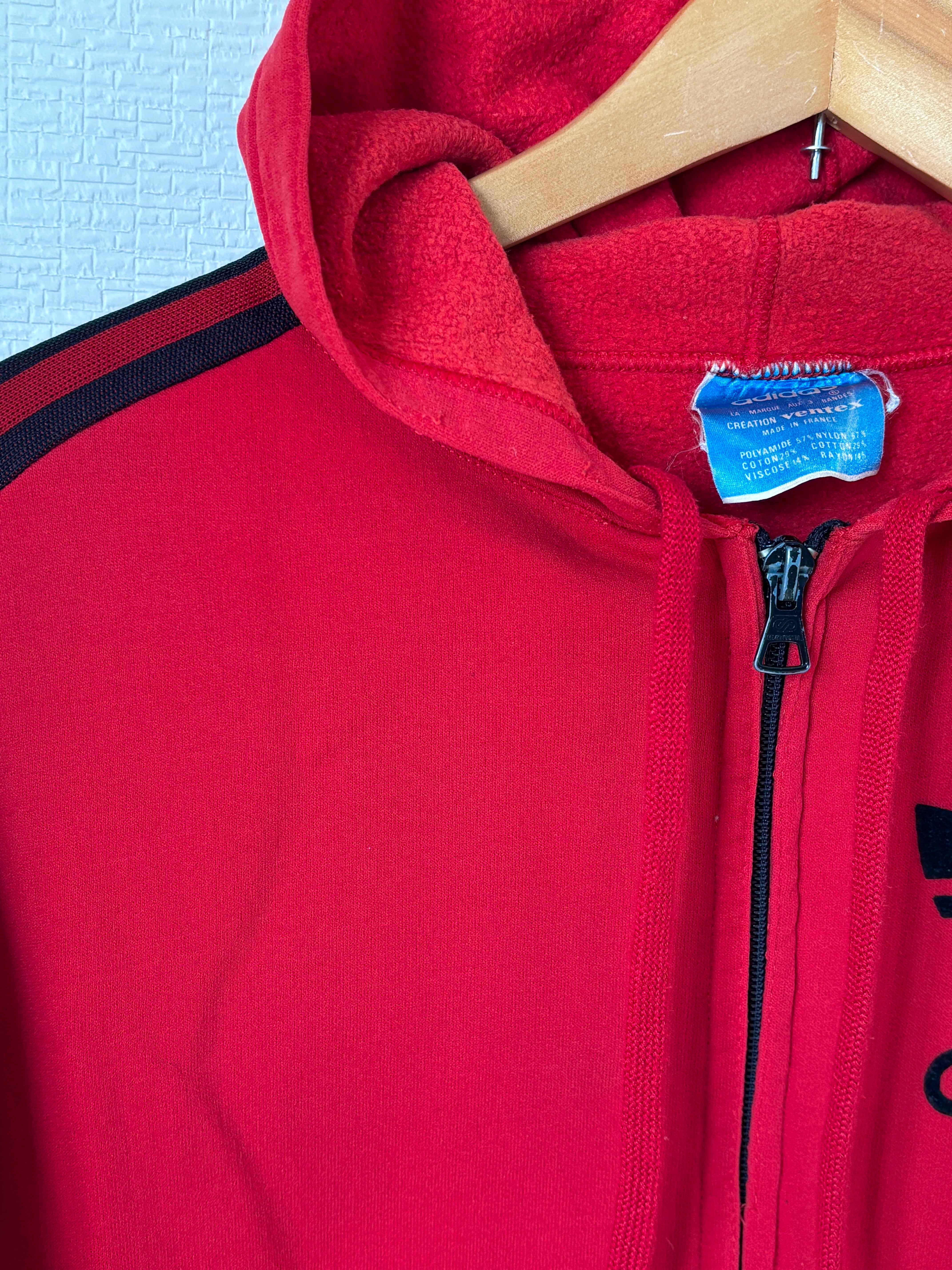 1972年から1995年までアディダスの正式ロゴとして使用されていた、トレフォイルロゴのパーカー。