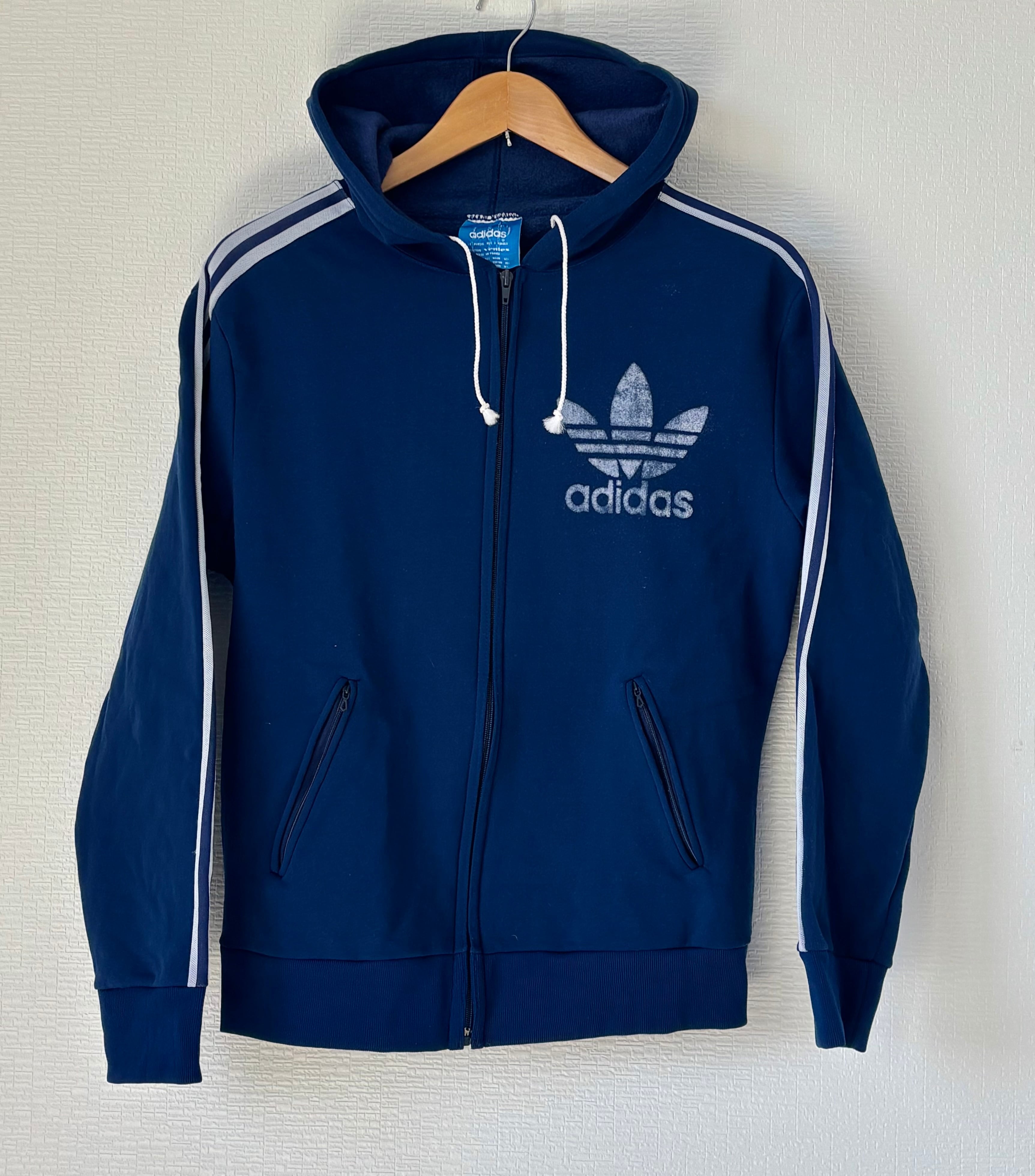 1972年から1995年までアディダスの正式ロゴとして使用されていた、トレフォイルロゴのパーカー。