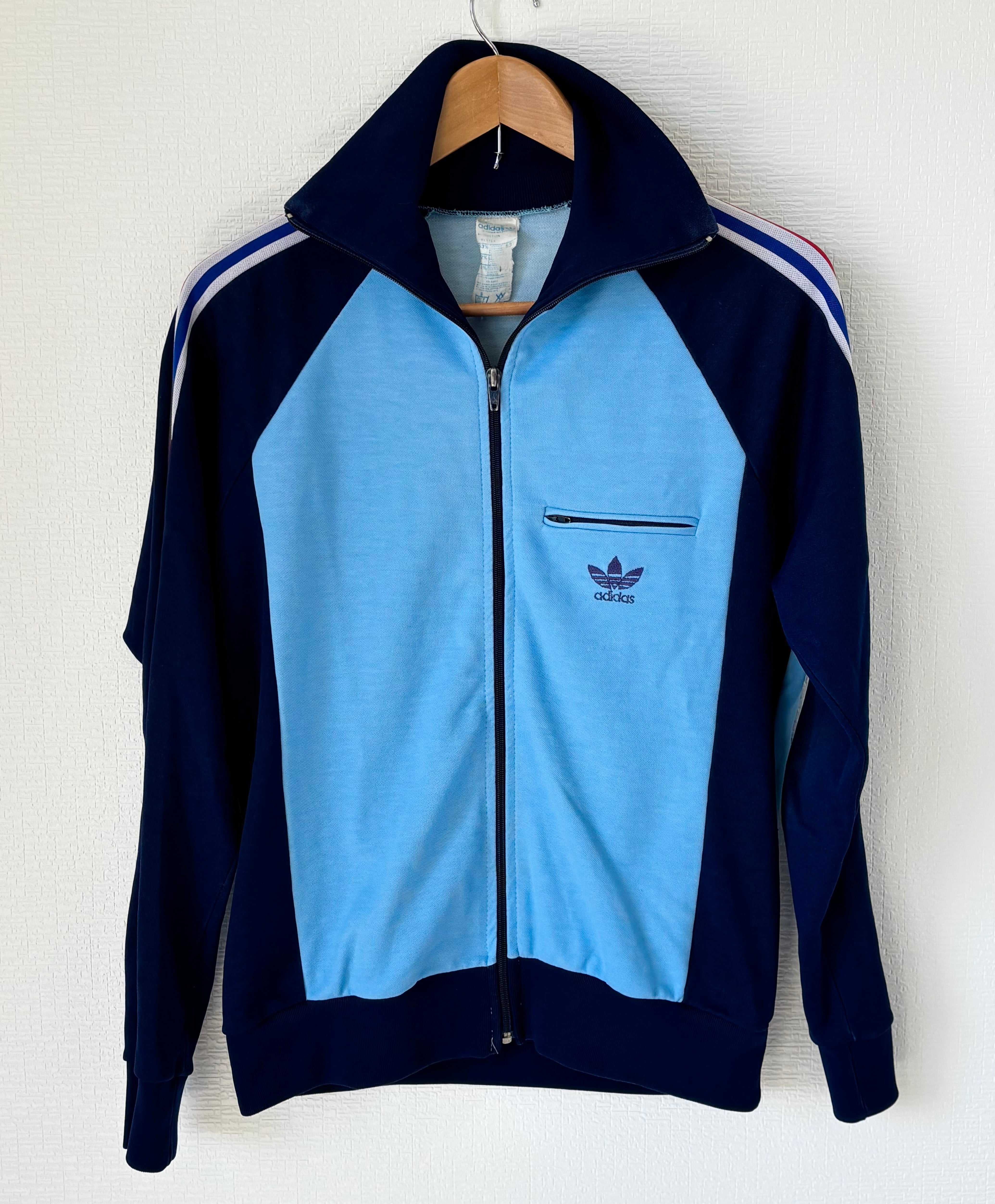 1972年から1995年までアディダスの正式ロゴとして使用されていたトレフォイルロゴのアディダスのトラックジャケット。フランスVentex製です。