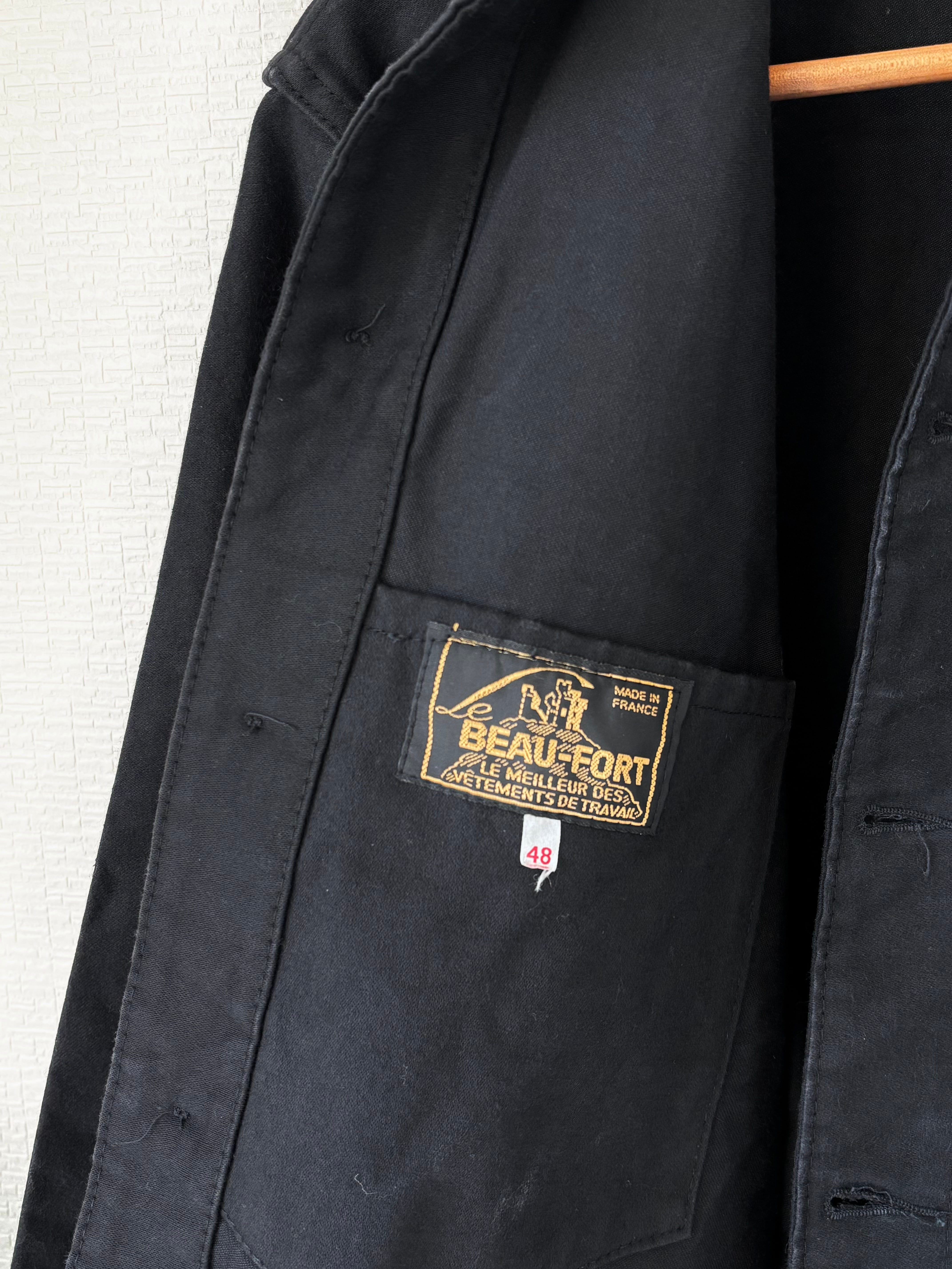1950年代頃のフランスの老舗ワークウェアブランドBeau Fortのブラックモールスキンフレンチワークジャケットです。