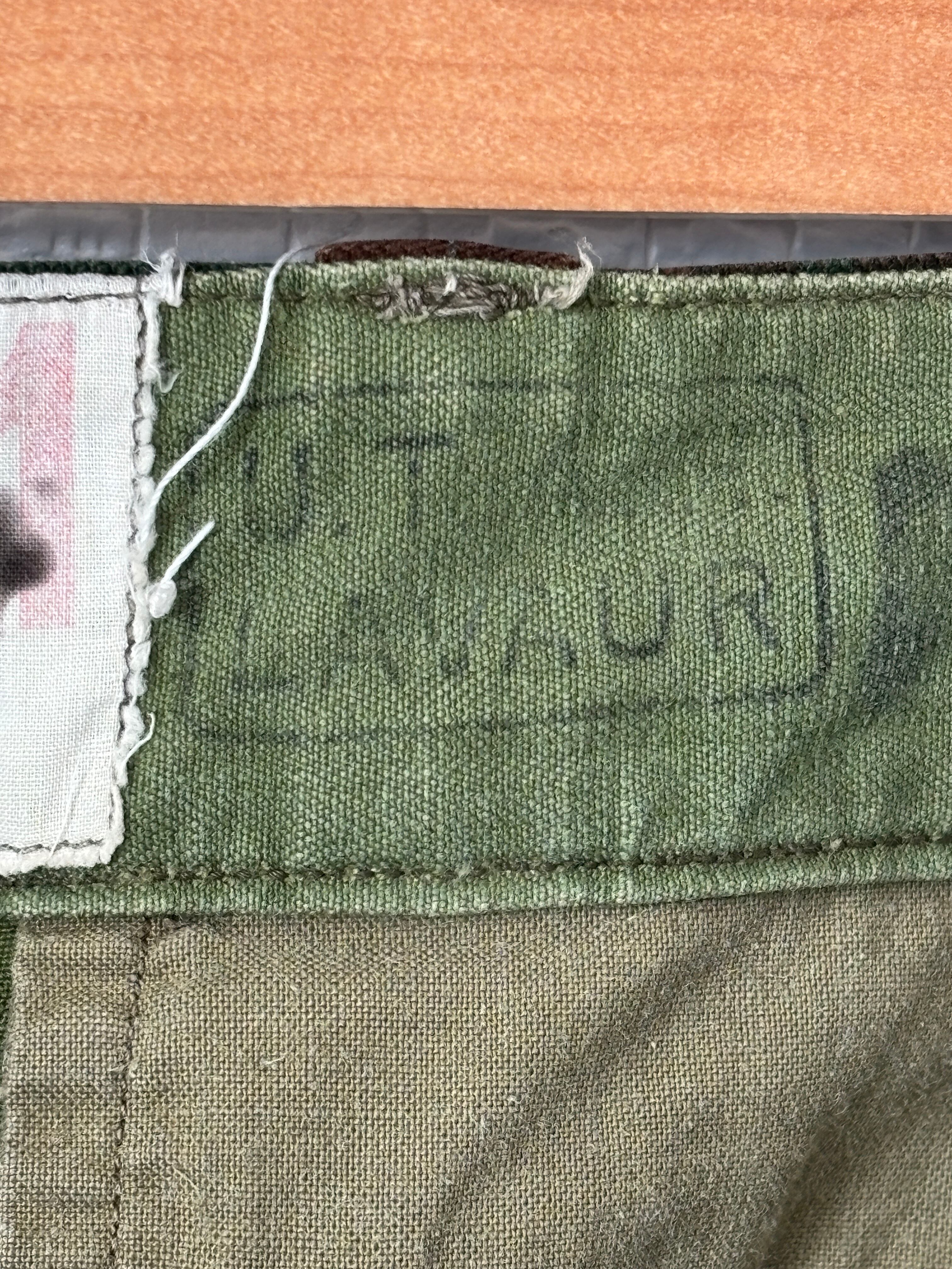 前期に比べるとやや軽い生地感ながら、しっかりとした印象です。生地にはヘリンボーンを使用。両サイドに大きなフラップポケットが付いていて、シルエットは少しテーパードしており、前期に比べるとすっきりしています。フレンチミリタリーの縫製の良さをこれでもかと感じることができると思います。