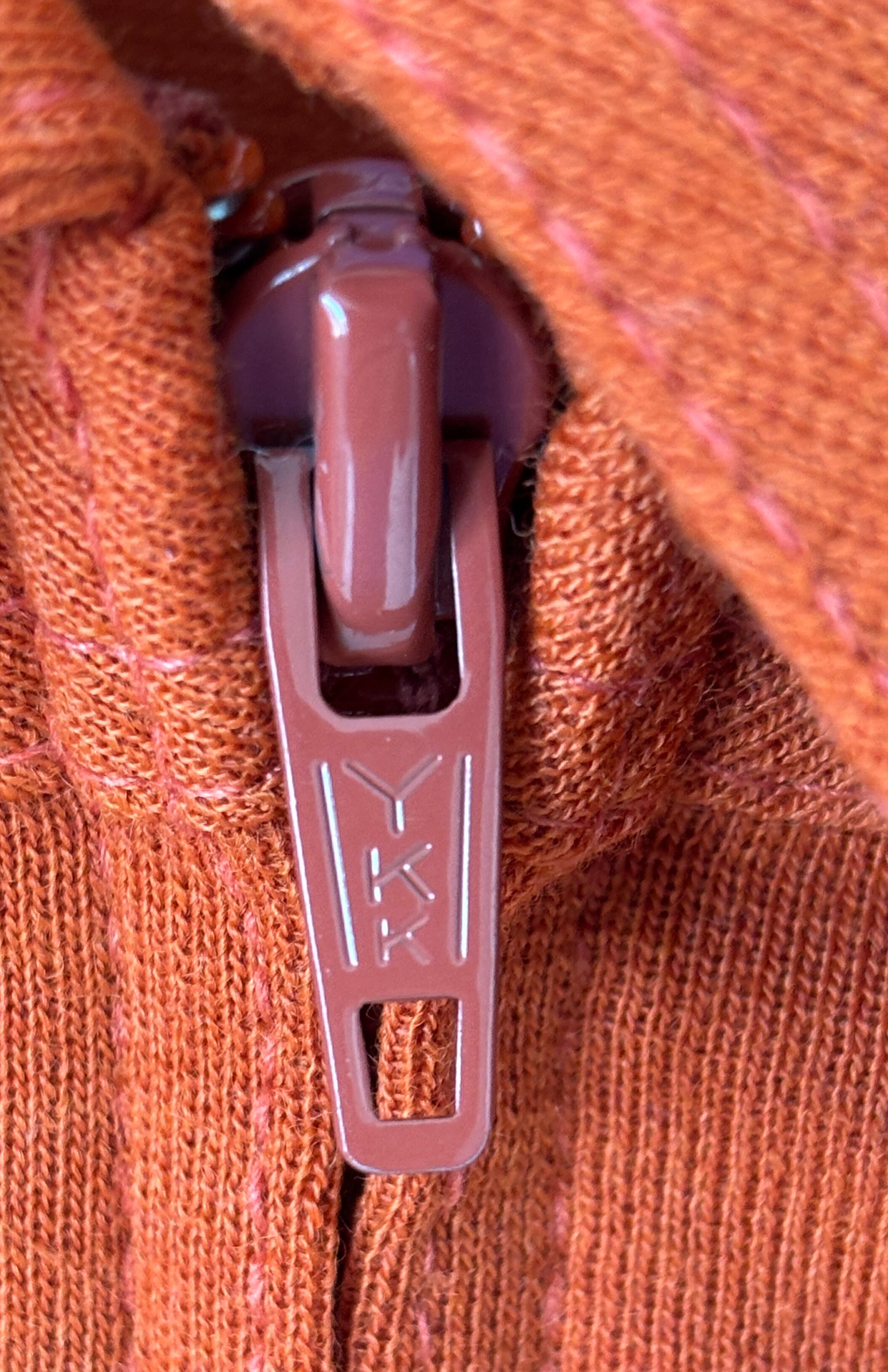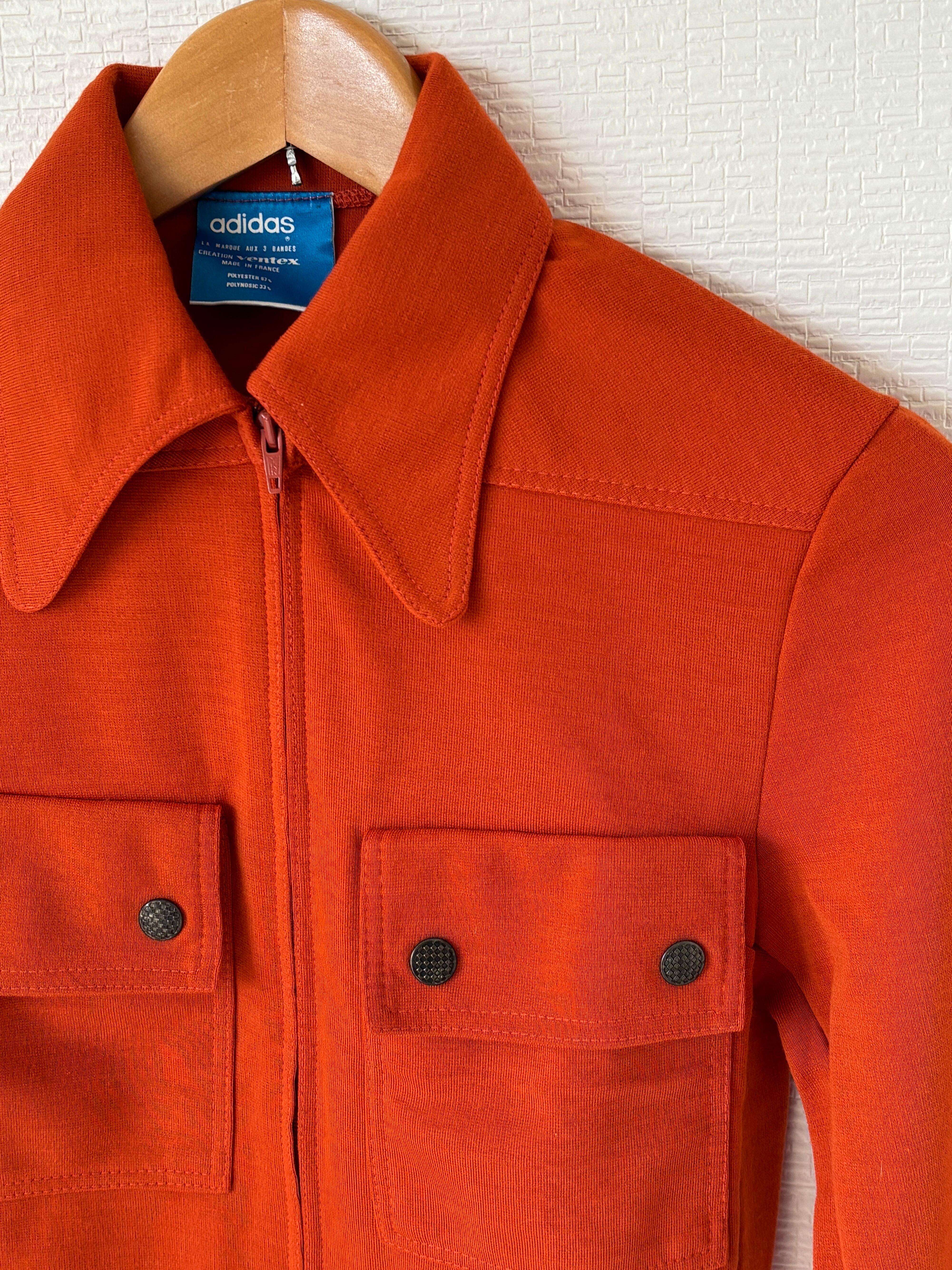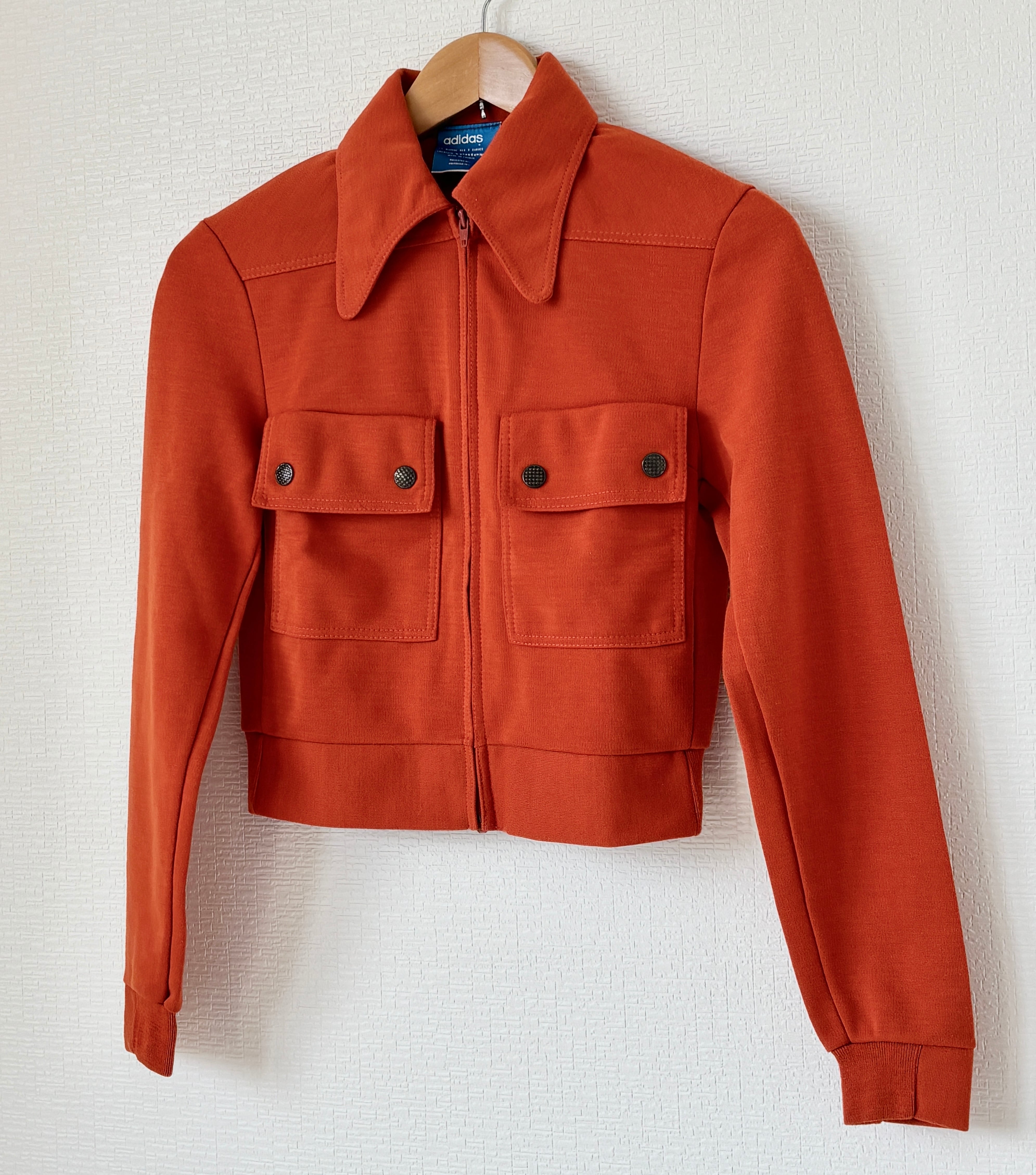 鮮やかなビタミンカラーでカーディガンのような一着。大きな胸ポケットが特徴的