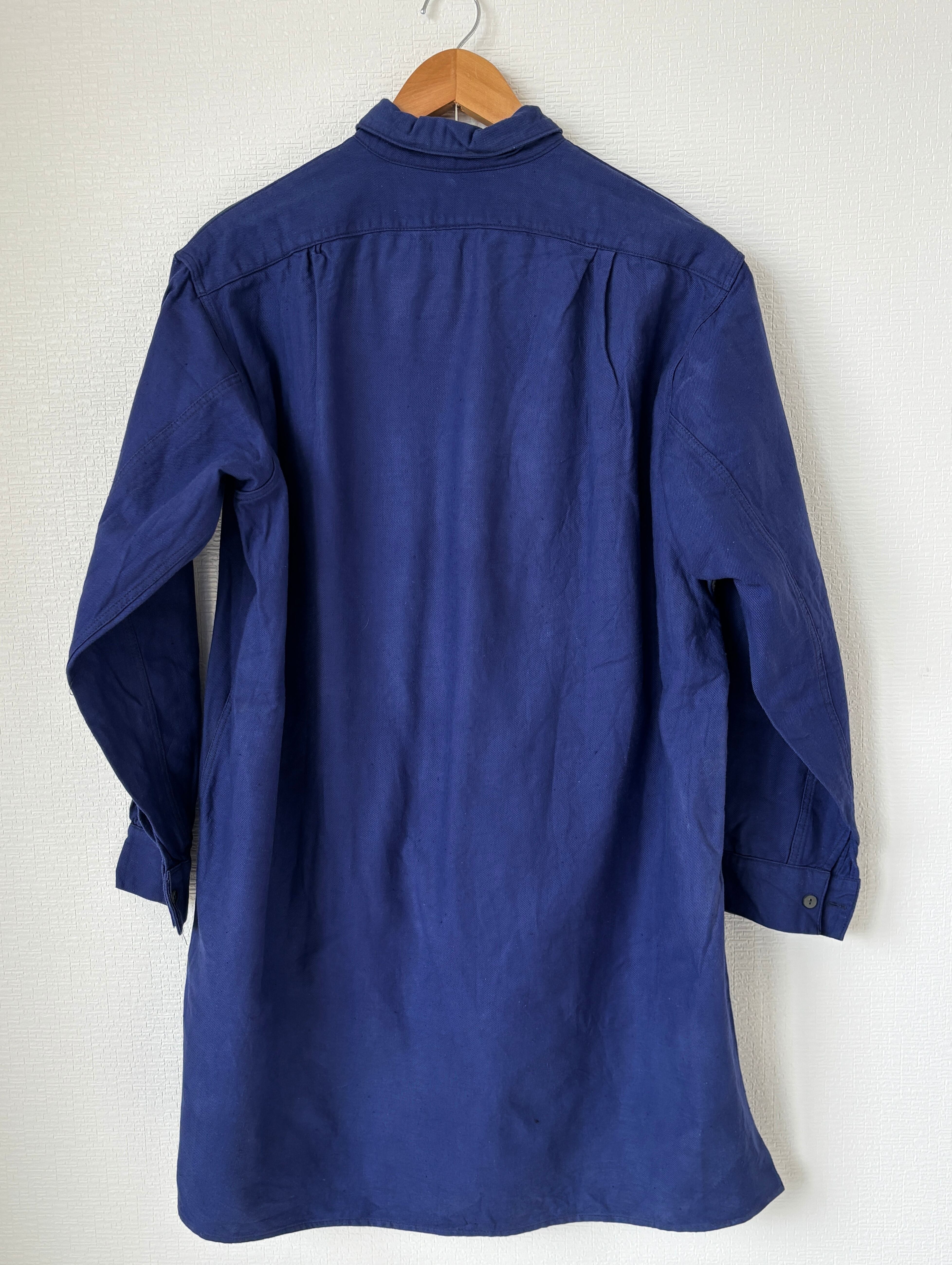 1940-50s France Vintage Ink Blue Granpa Shirt