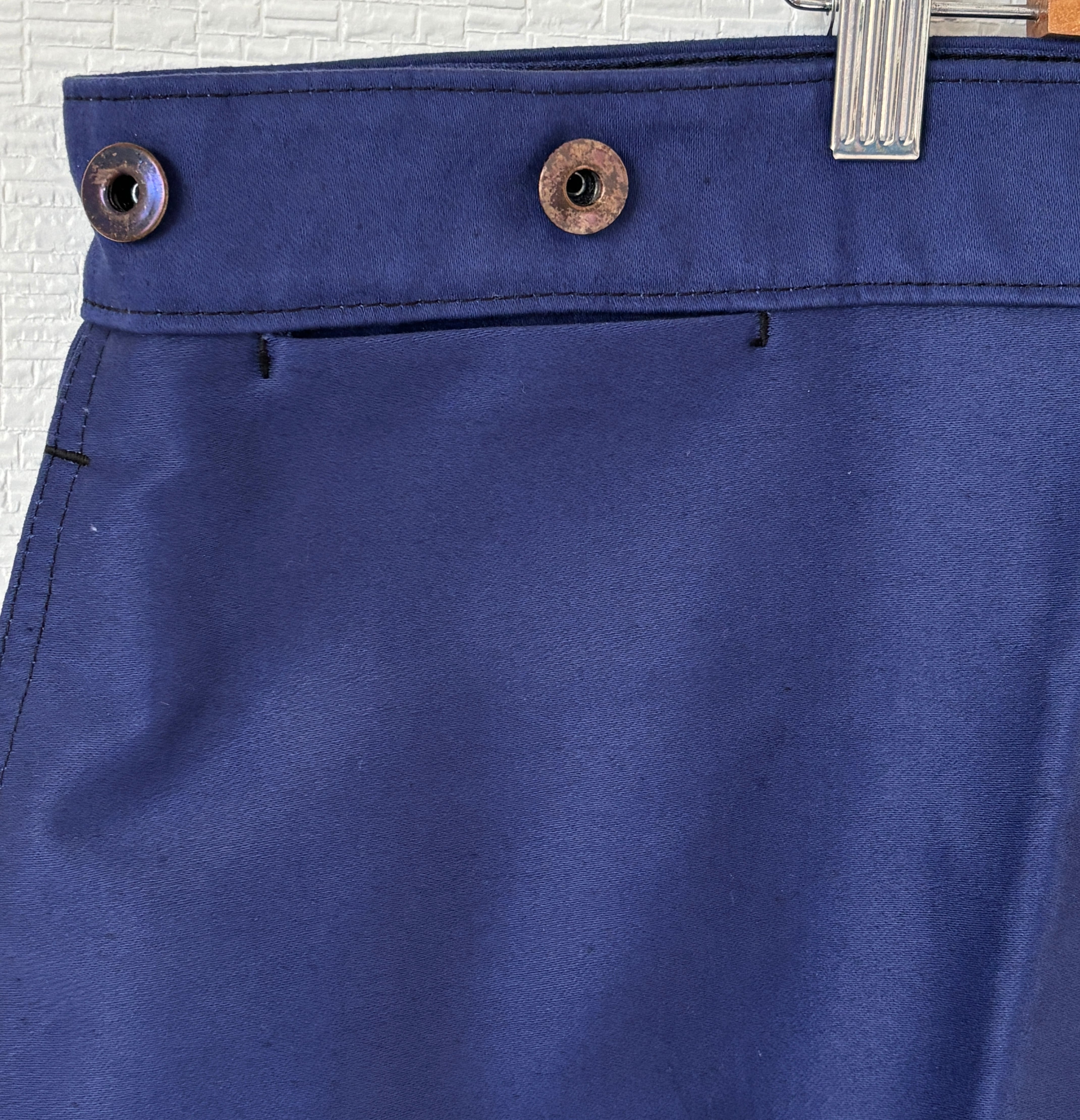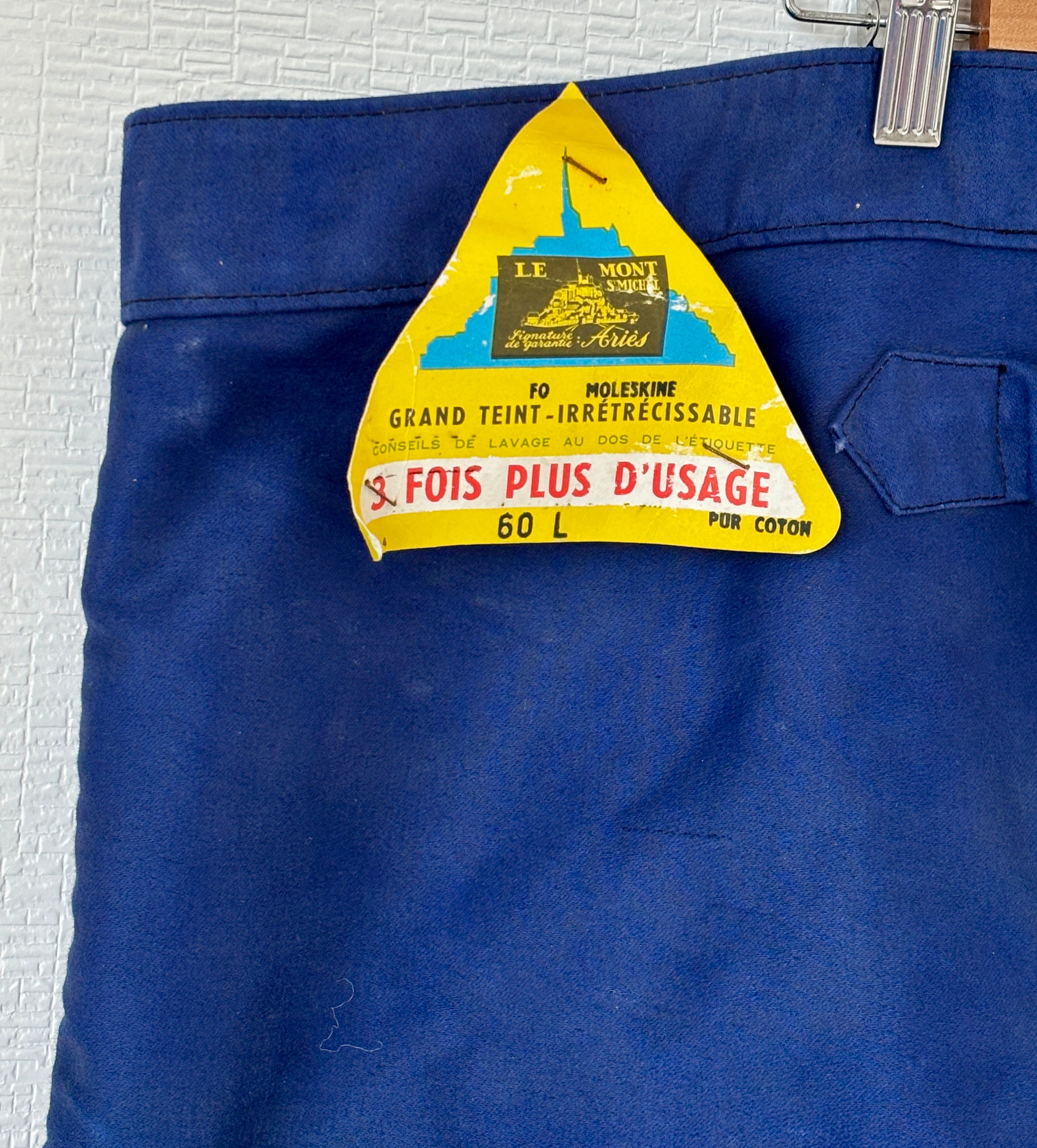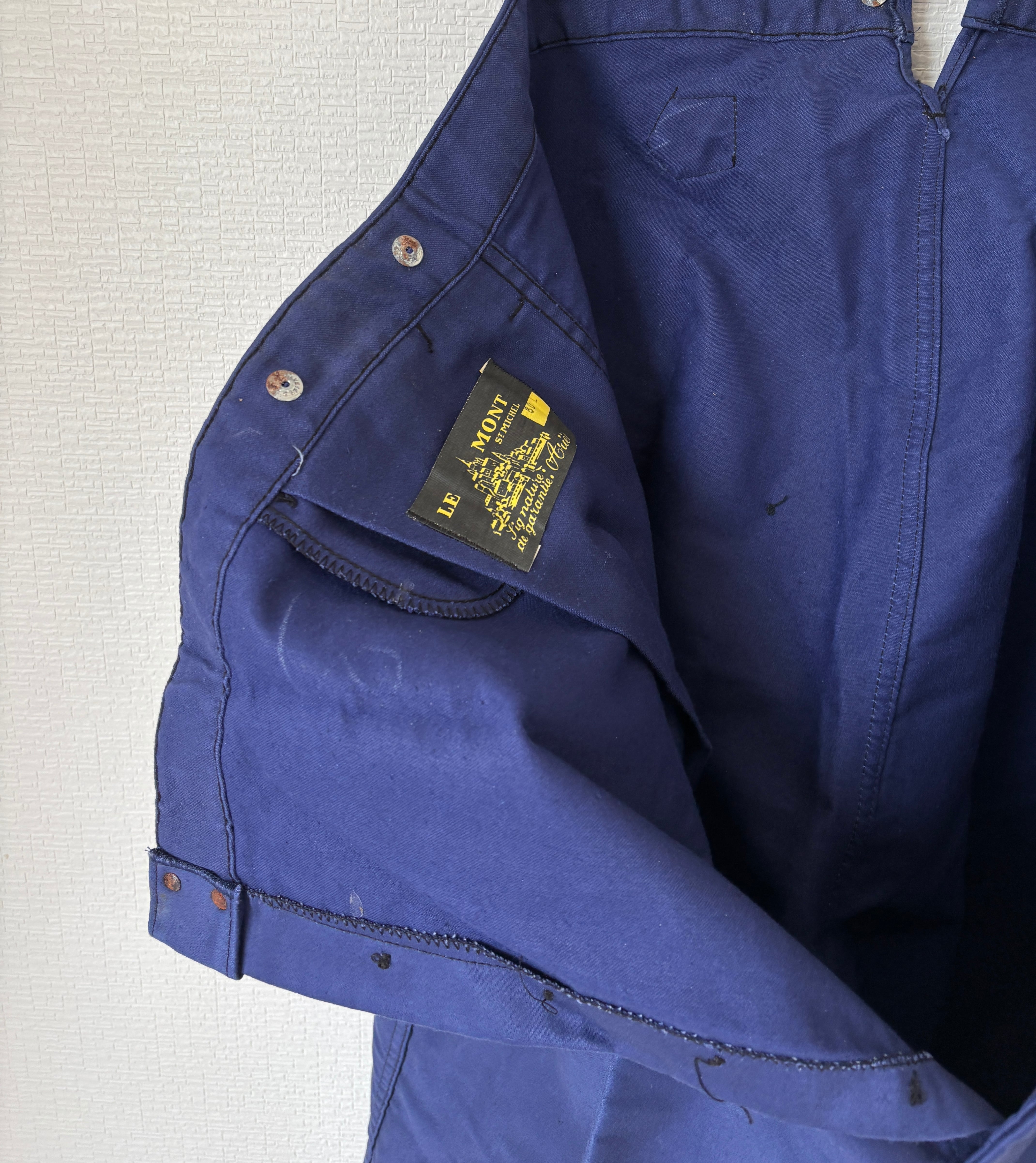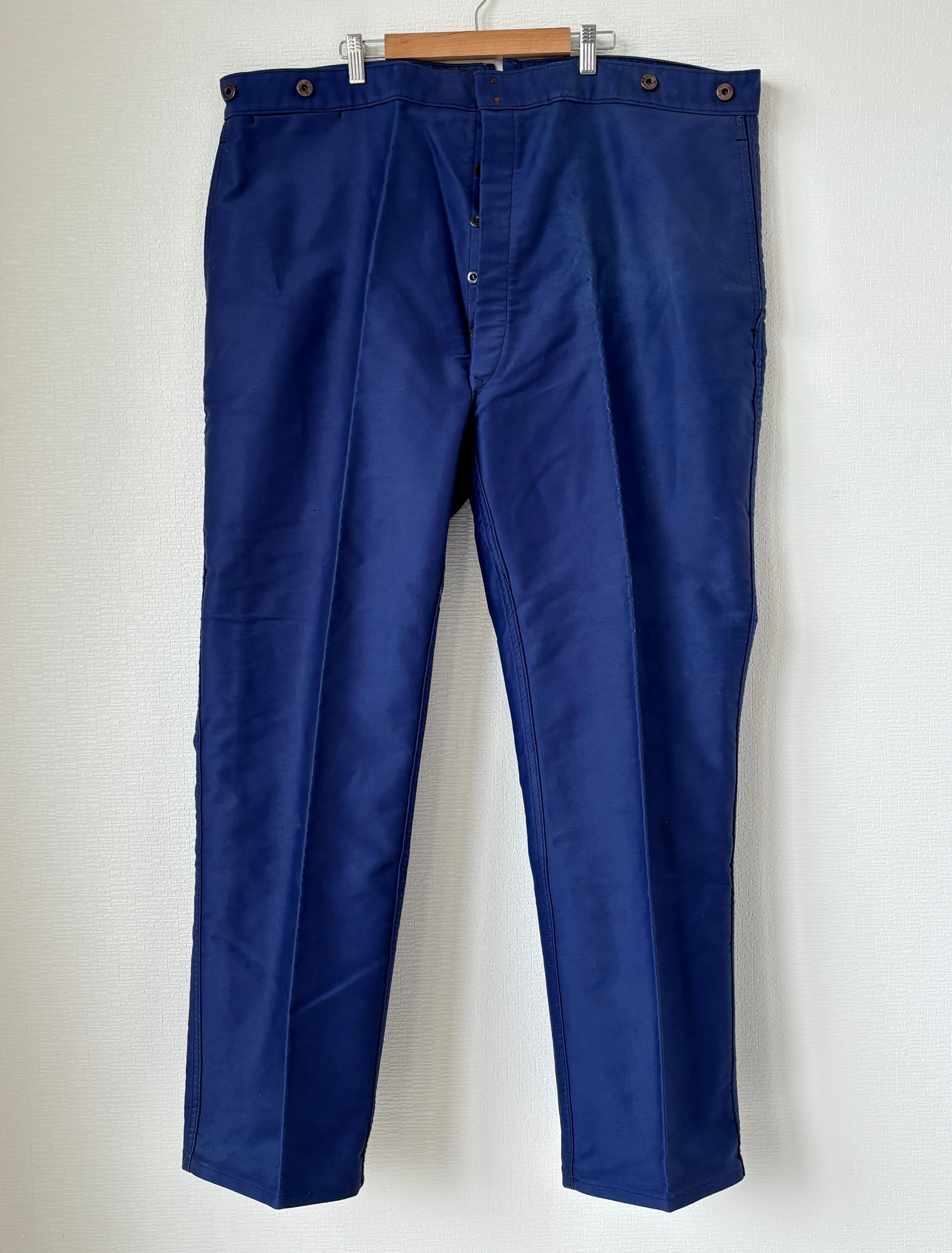 こちらは1950年代頃のモン・サン・ミシェル製ブルーモールスキンワークトラウザーズになります。
