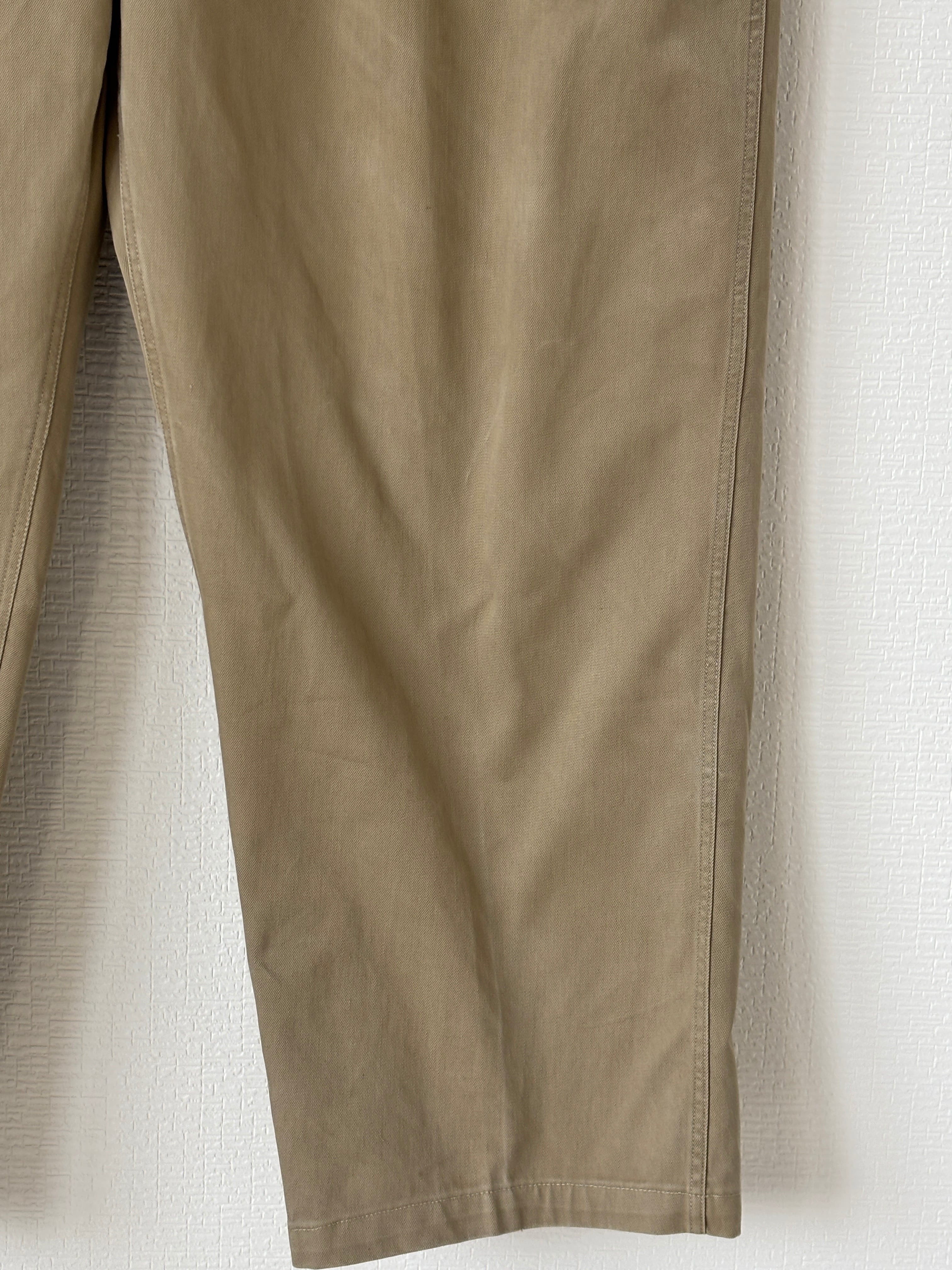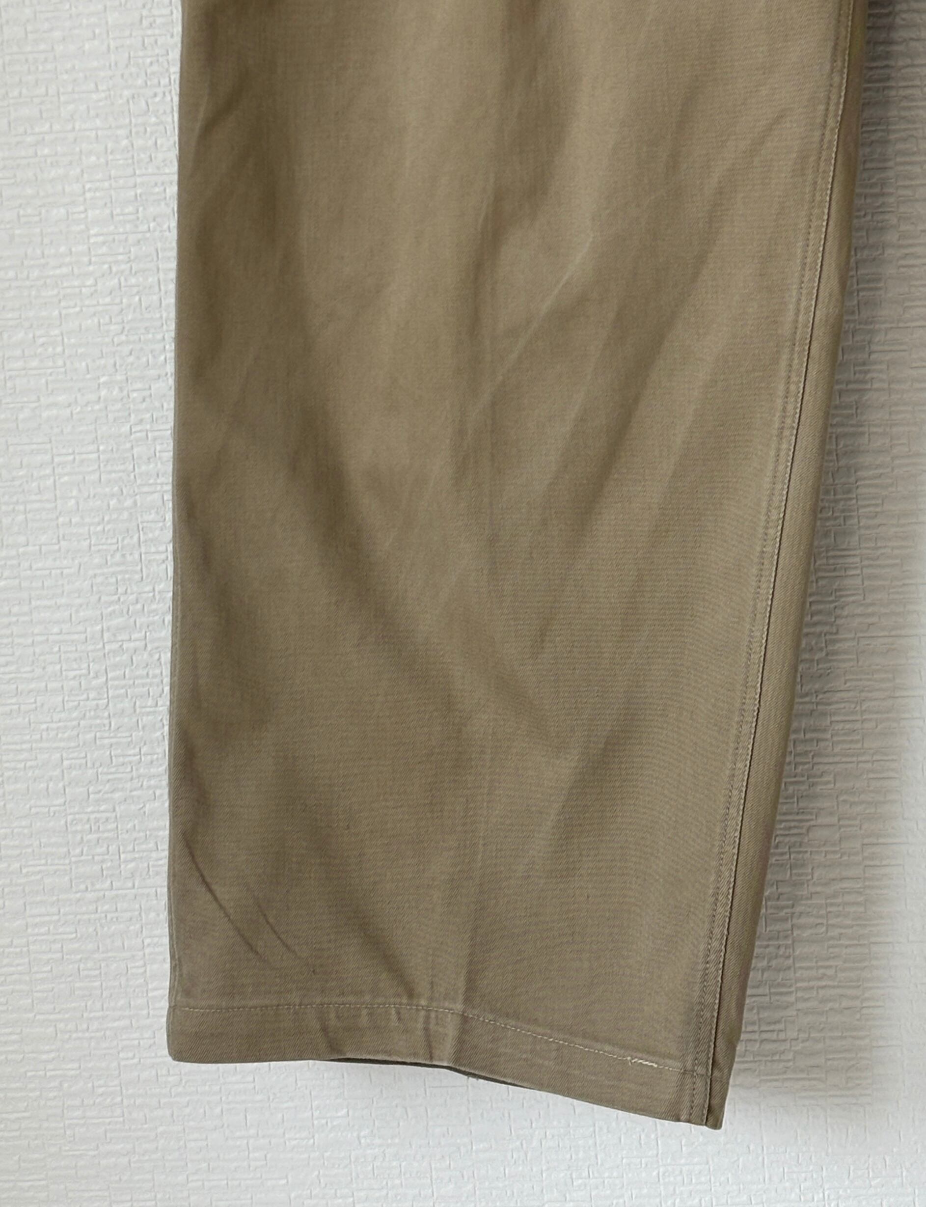 タックが入っているのでハイウエストの腰周りにはゆとりがあり、膝にかけては太めのシルエット、と思ったらそこで終わらず、裾にかけてテーパード になっているところが本当に美しい一枚です。