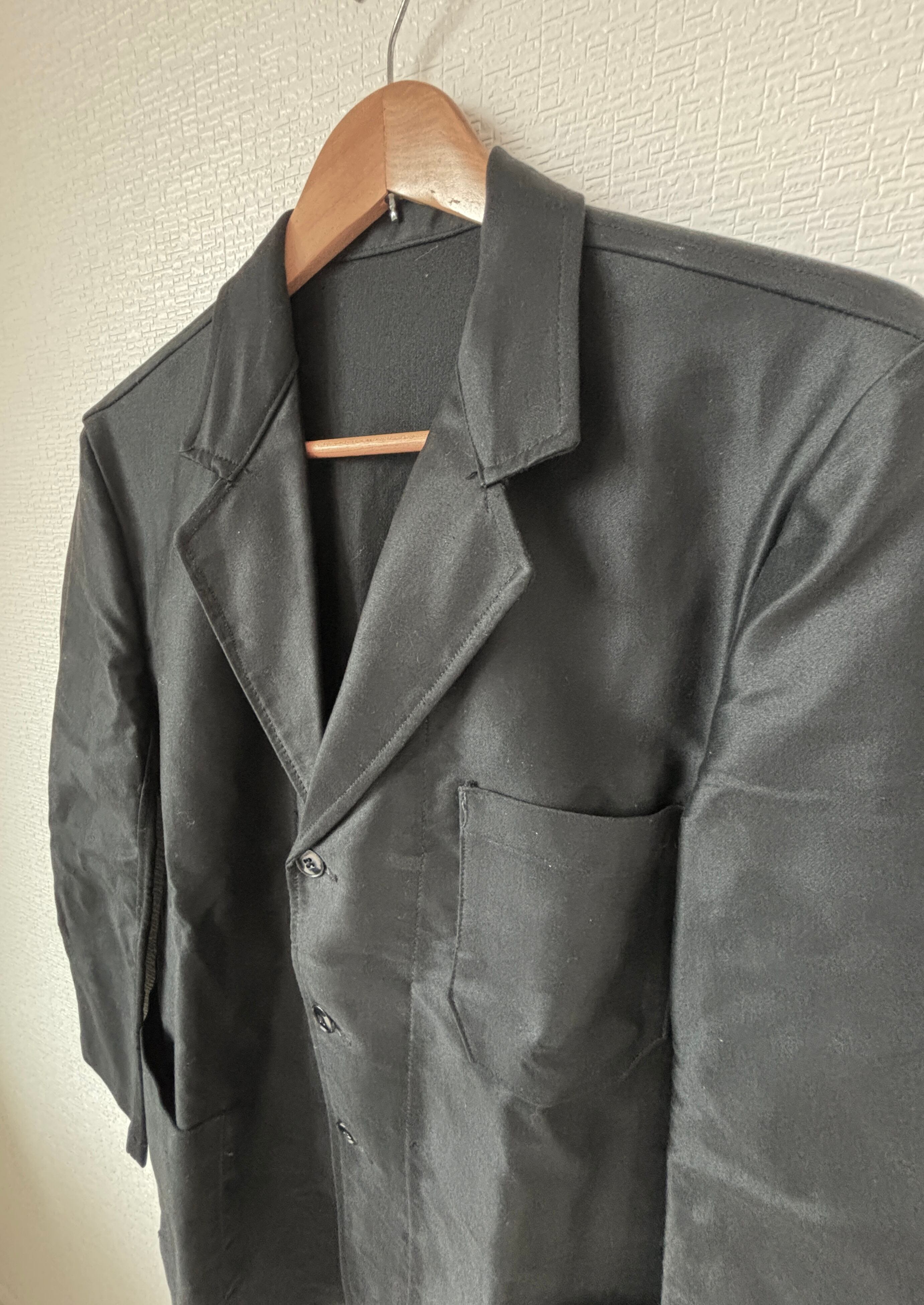 光沢感のあるブラックモールスキン地に綺麗なシルエットはフレンチヴィンテージの定番、細かにみると若干ディテールもブランドによって異なりますが襟の形状やポケットの付き方も良いタイプ。1枚は持っておきたいアイテムだと思います。