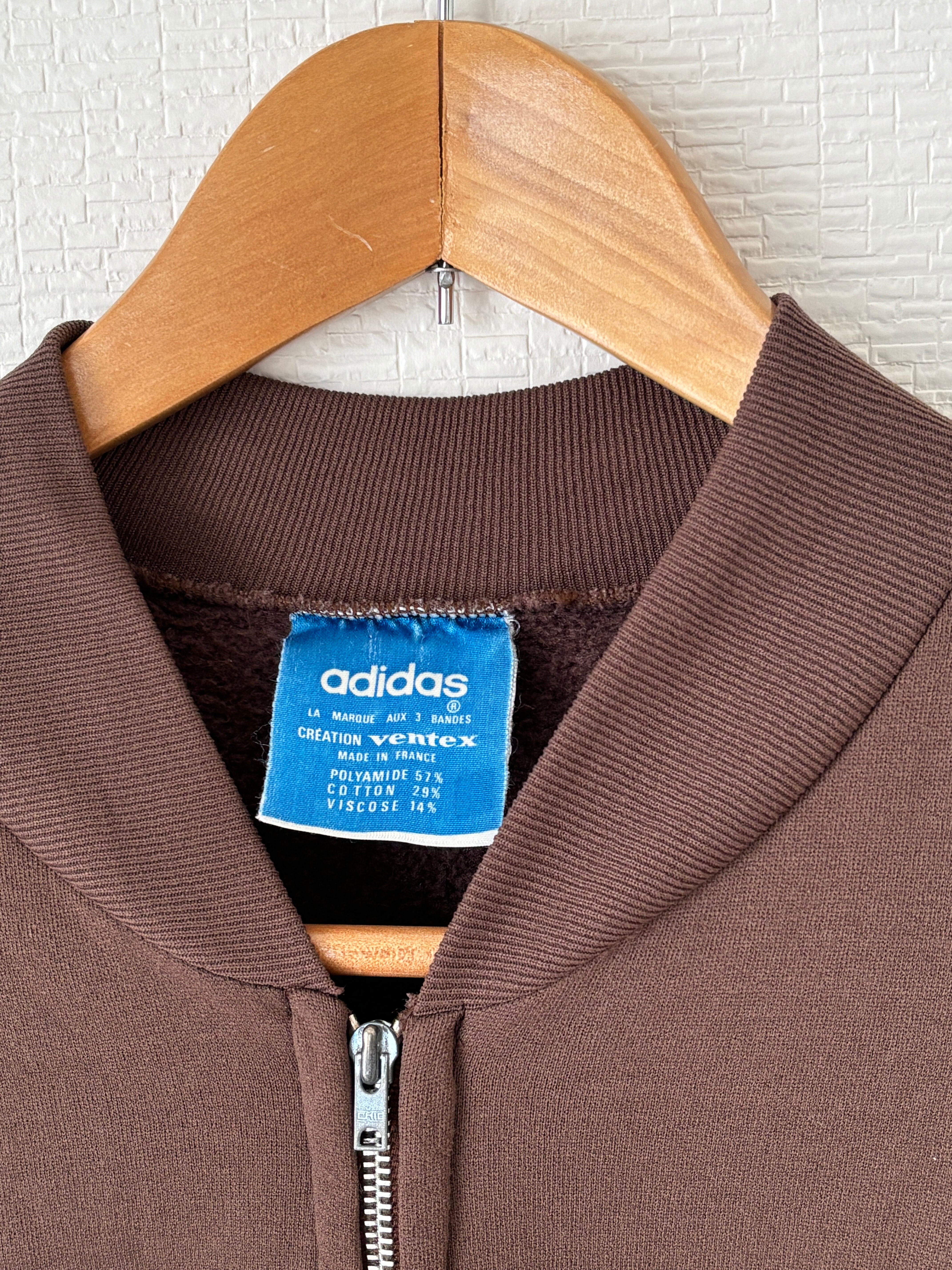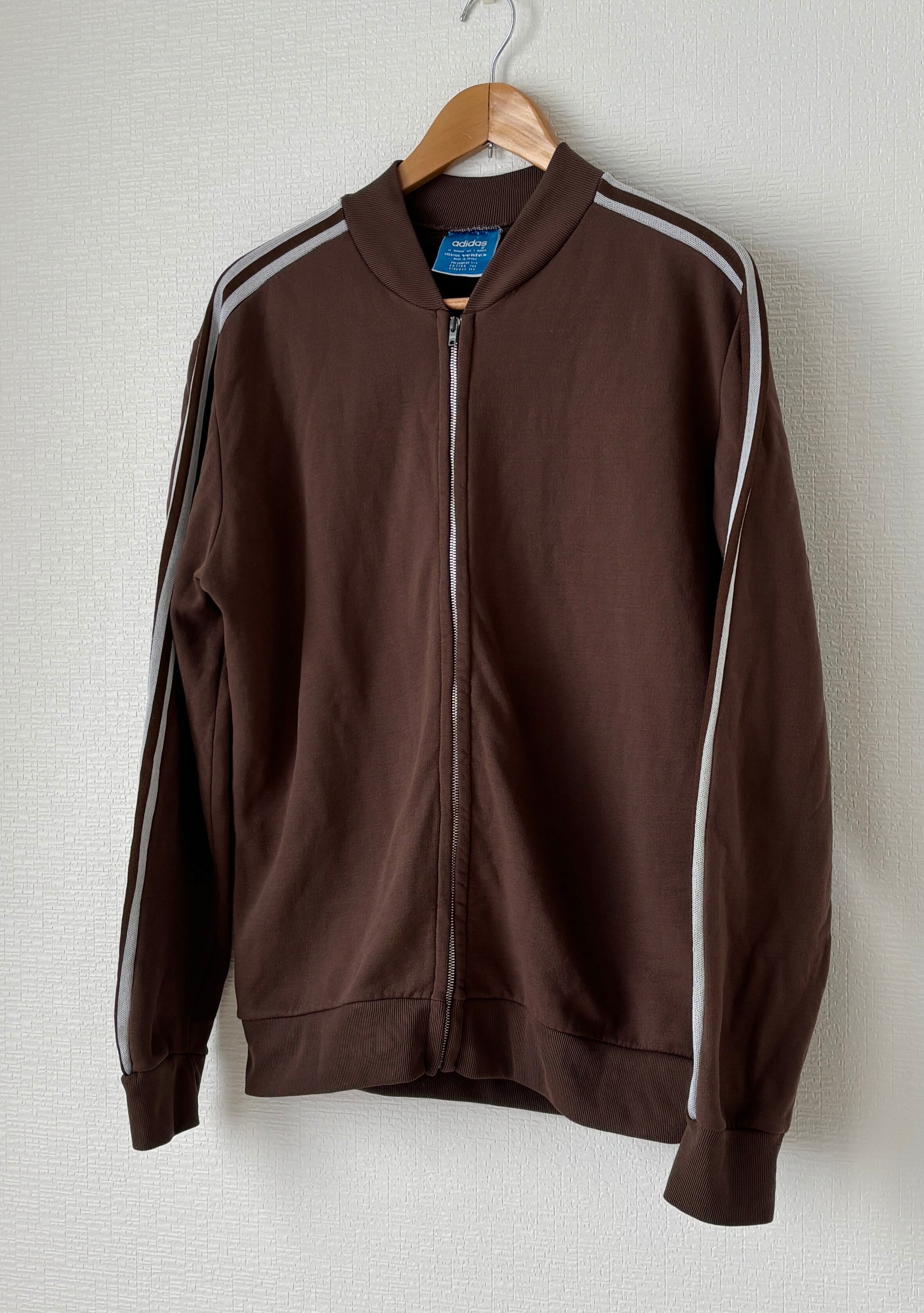 70年代にフランスのadidasが一部のスポーツウェアに使用していた襟なしトラックジャケットです。コットン混のVentex社製ボディ