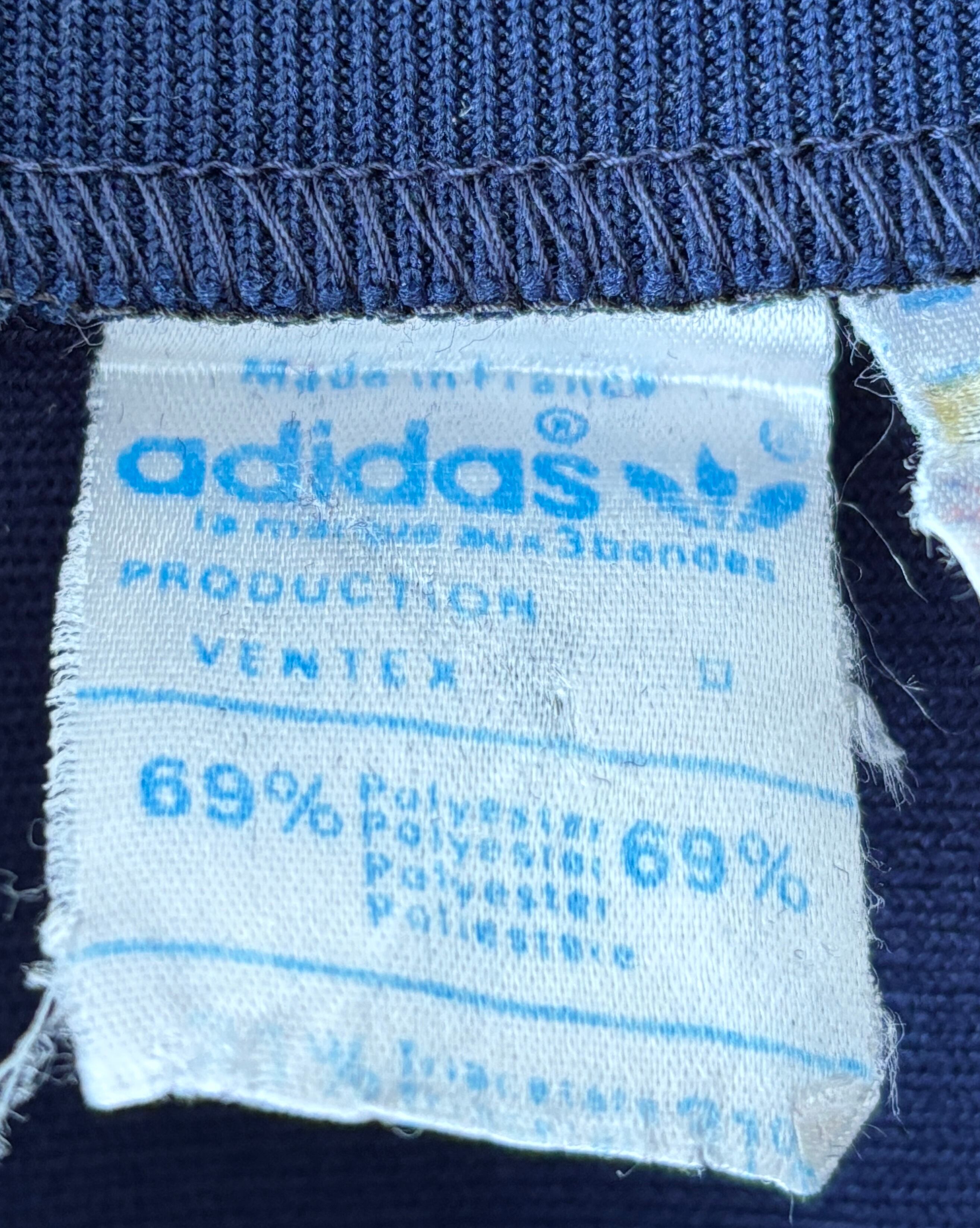 1972年から1995年までアディダスの正式ロゴとして使用されていた、トレフォイルロゴのトラックジャケット。フランスのVENTEX社製です。